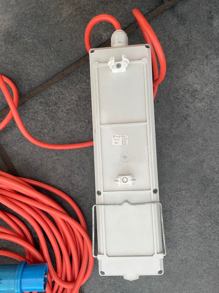 One mains electric hook up lead. 20M cable with 3 way socket board. Hook on rear for use in tent or caravan. The item has barely been used.