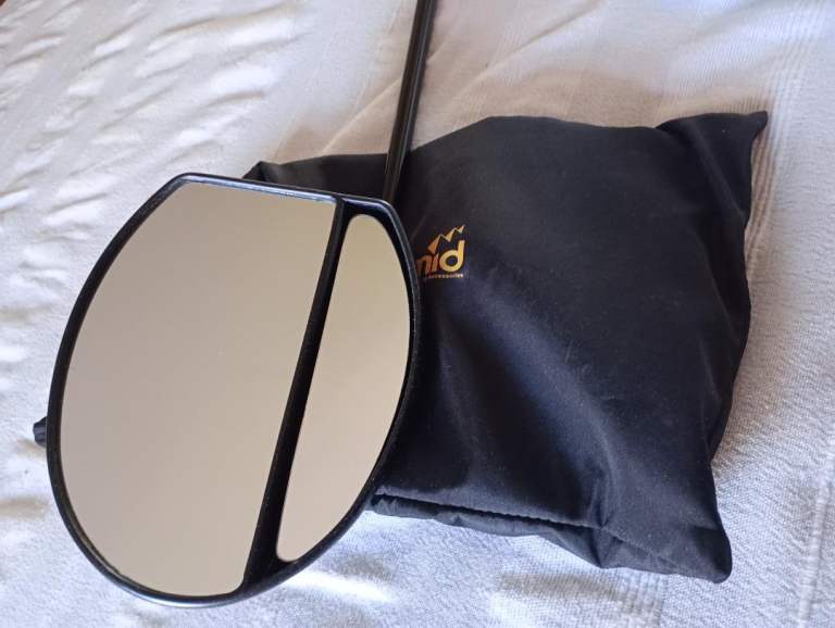 fits conveniently and safely to existing mirrors using 3 quick fit clamps with adjustable straps and safety lanyard