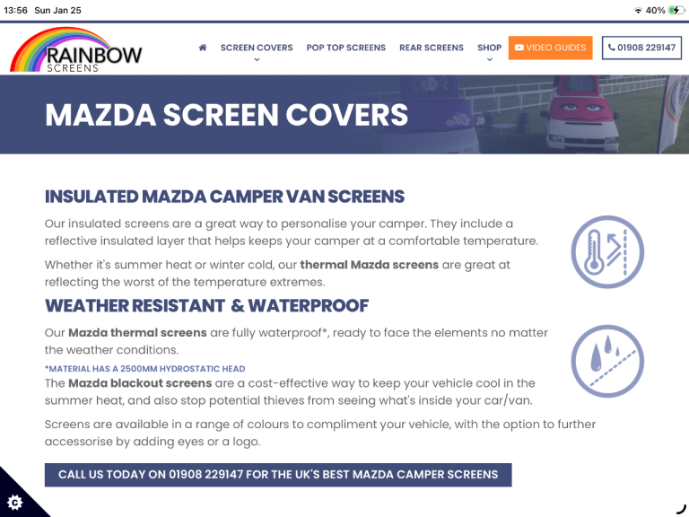 Posting for 2+ yearsMazda bongo screen cover in black from the rainbow screen company