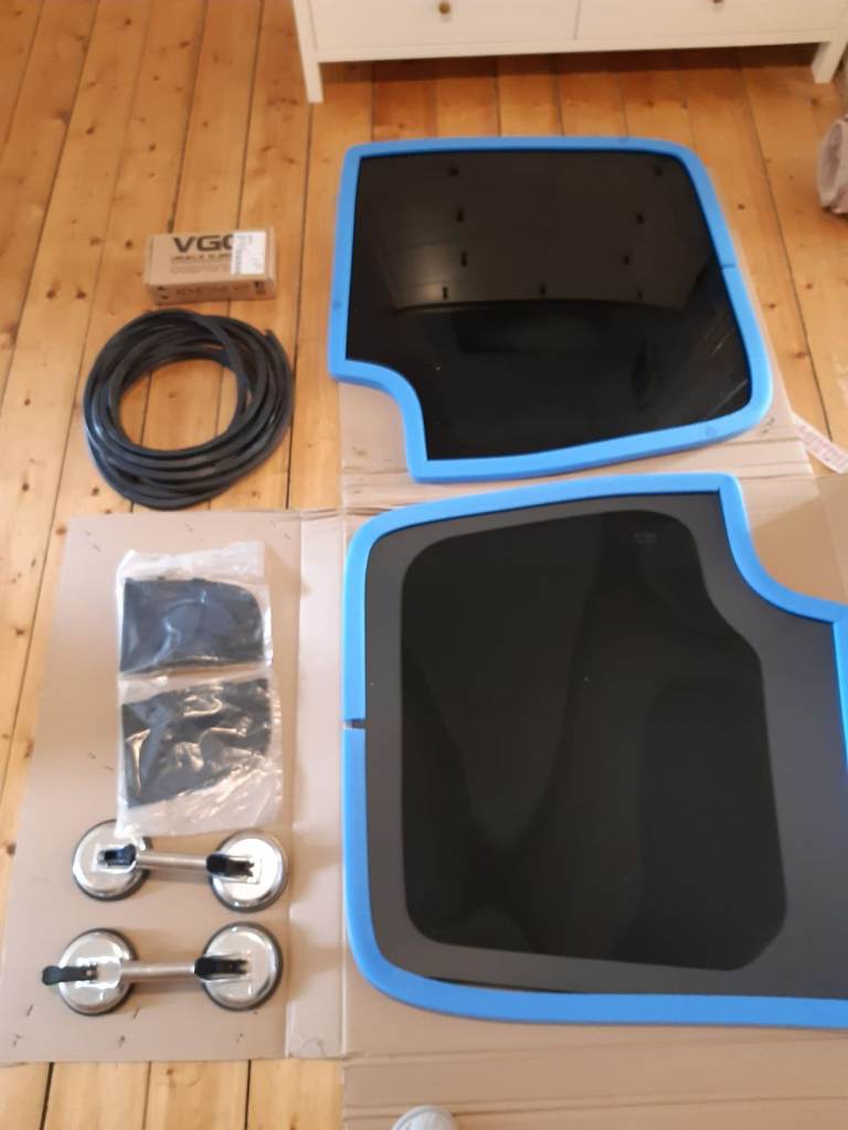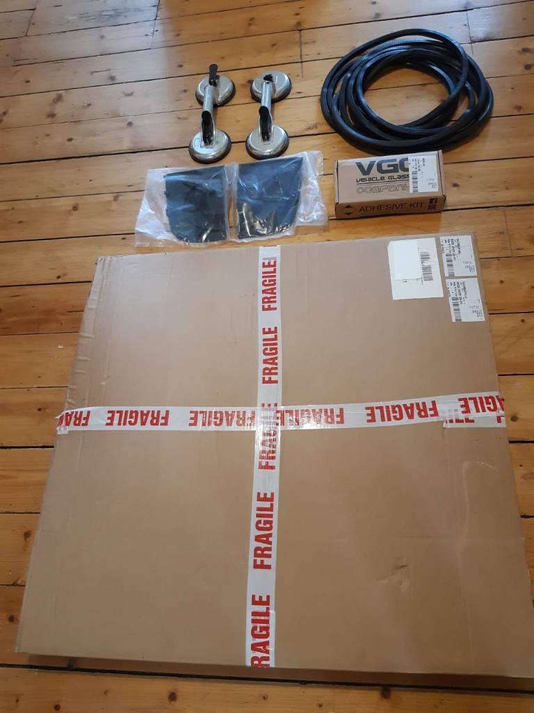 Includes: Complete set with all trims for badge, seal, bonding adhesive, and a pair of glass fitting grabs for safe lifting and accurate positioning during installation. Have included some ribbed flex seal but I'm unsure if this will complete both windows as it depends on the cut-out you have but will save you money either way.