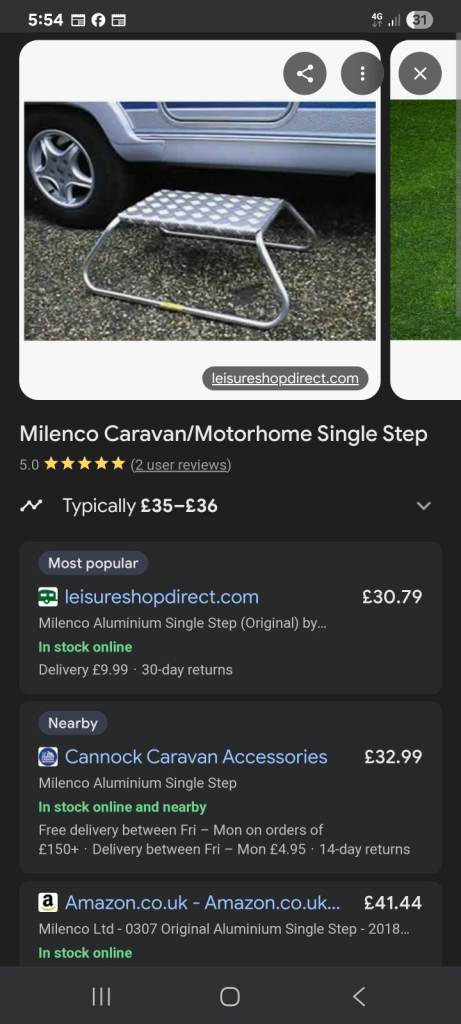 Milenco aluminium caravan solid sturdy step lightweight with fake grass mat on top.. cost 30+ pounds new