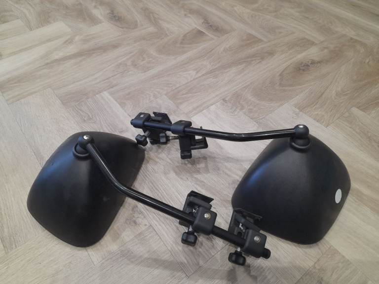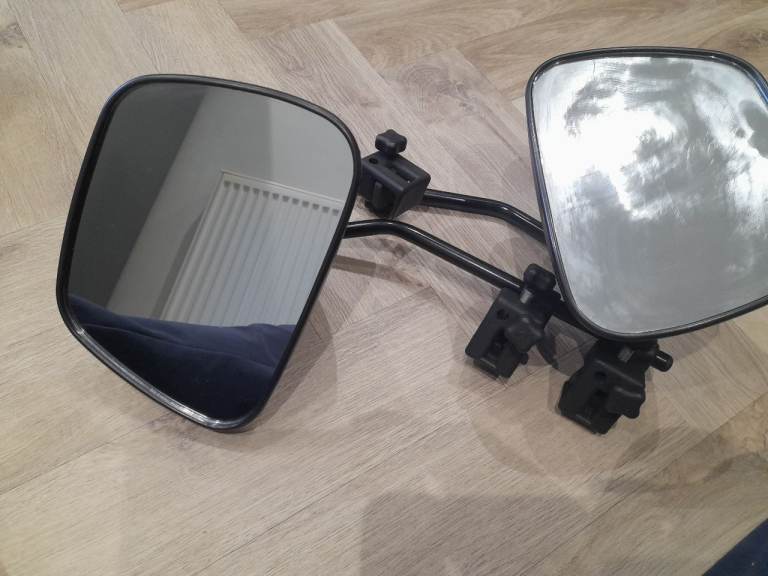 Caravan towing mirrors twin pack and storage bag. The clamp system will fit most cars and vans. In very good condition. Collection only please.