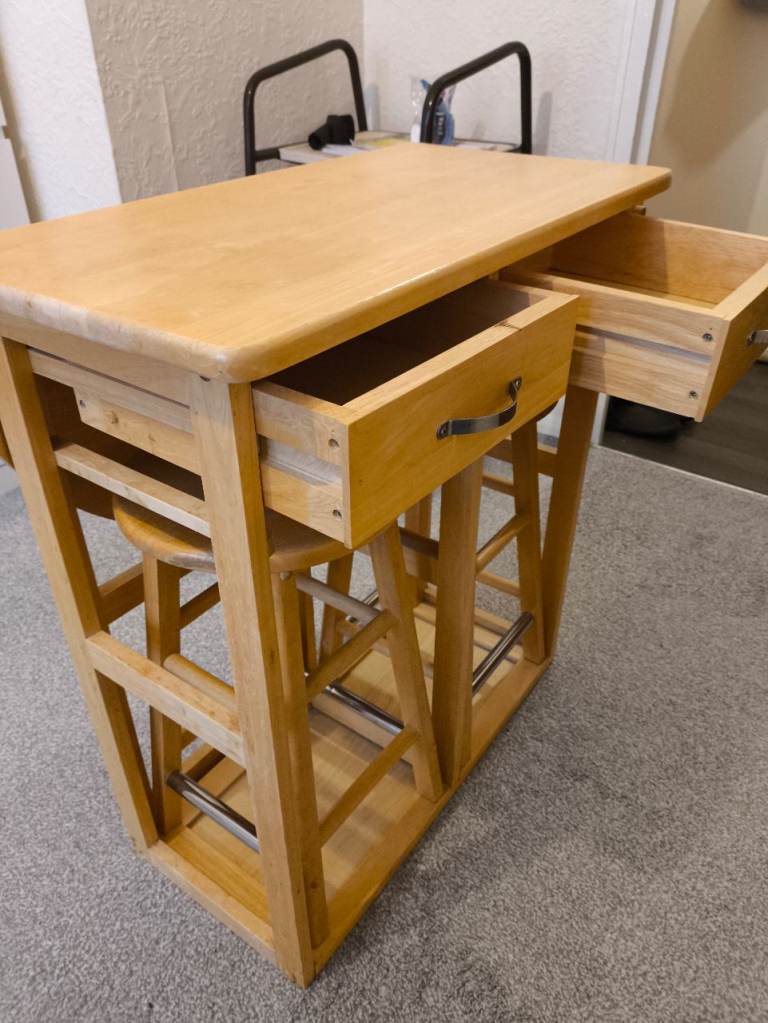 Close/open mini dinning table with x2 chairs & x2 draws.