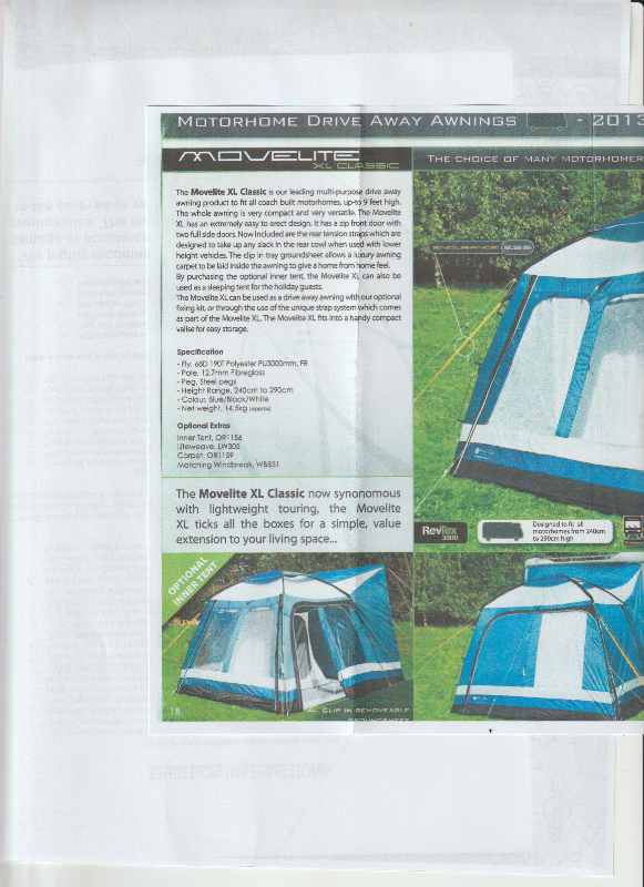 The Movelite can stand alone to show occupancyof the site and when you return it attaches to the awning rail on the side of your motorhome using Figure 8 joining strip included. The Awning is complete with groundsheet and all accessories. it has only been used for one trip accommodating two extra guests. It is in as new condition. Buyer to inspect and collect.
