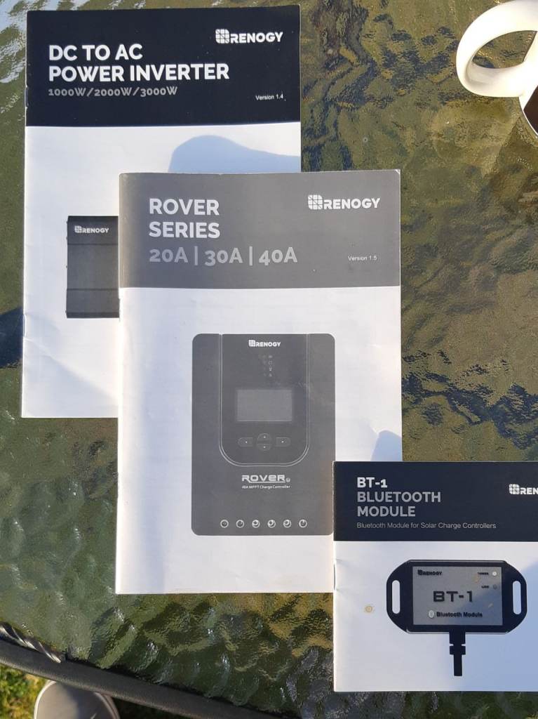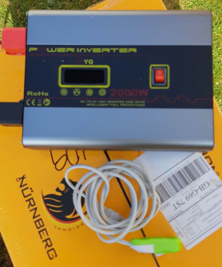 I bought a caravan that was half way through a conversion to run off solar power. so none of this equipment has been used. but I dont need solar power as it's used for fishing weekends and its scotland the weather isnt that good. When I was driving home I didnt know there was solar panels on the roof of caravan I had just bought and they came off on motorway, but one was inside van safe. so I have stripped everything out of caravan I have (2 power inverters) 1 renogy 1000w & 1 YQ 2000w both with remotes, the renogy is the full package With a 20amp control charger and all the wires. 1 renogy 50amh Lithium Iron phosphate battery and 130w solar panel so if anyone wants to set up a campervan or caravan I can sell everything at once or split to suit what you need. (within reason) phone me and I will sell with a massive discount.. all manuals included. total cost of everything is about £500