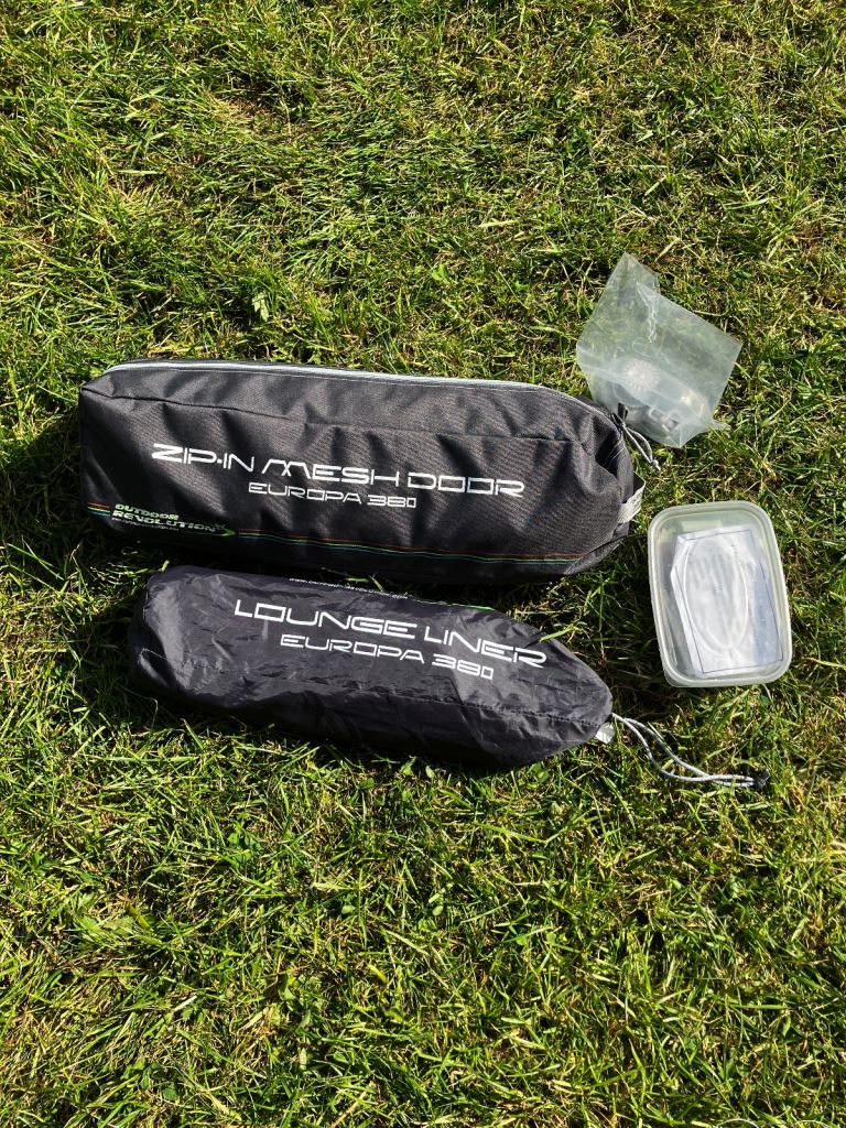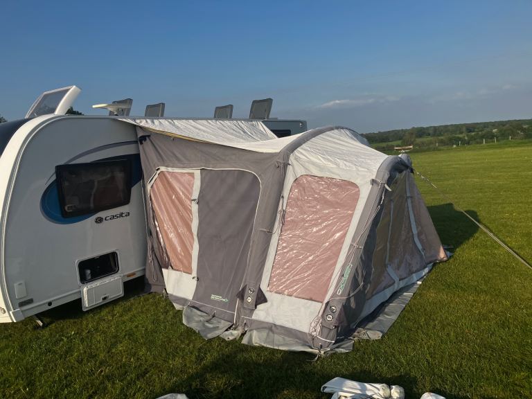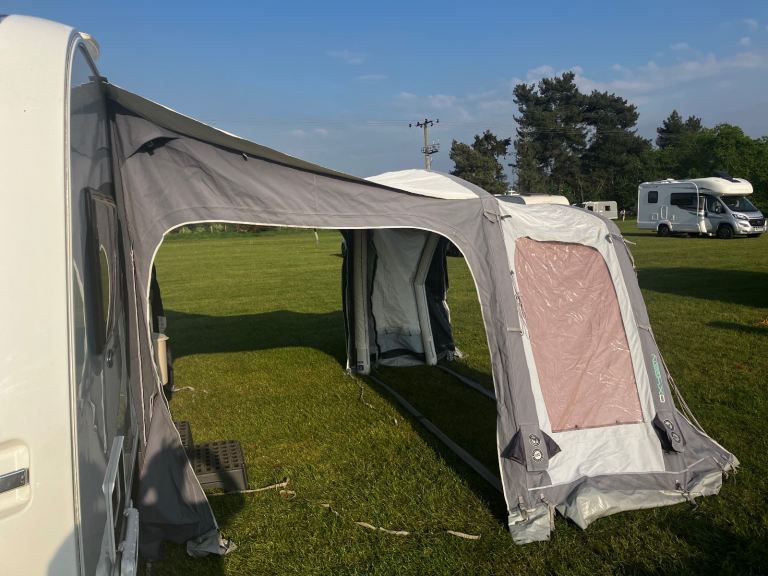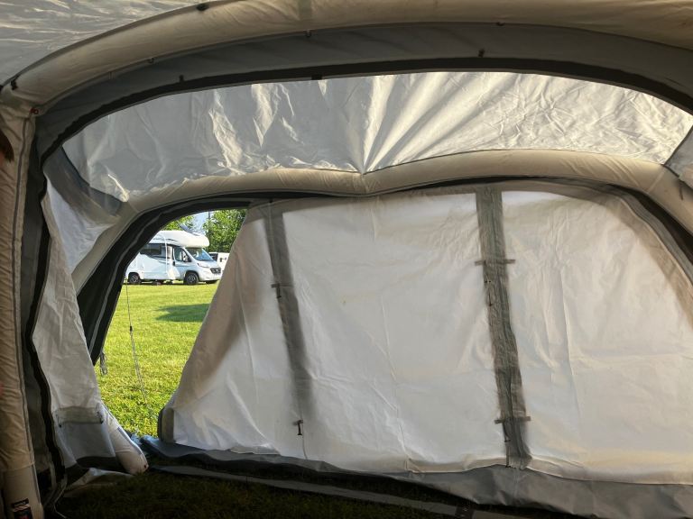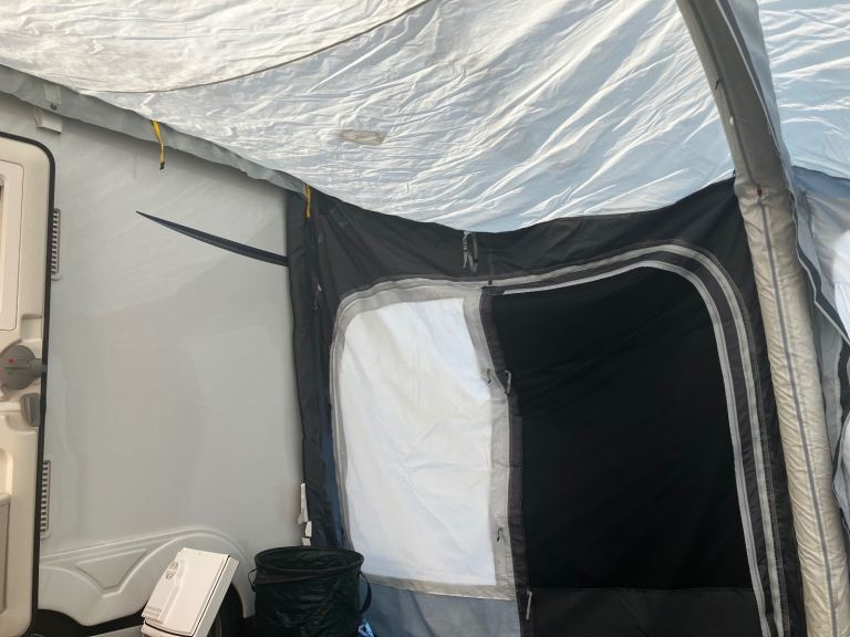Outdoor revolution europa 380 air awning In good condition had a small tear in the one window has been repaired doesn’t effect the use see picture comes with mesh door as an extra and lounge liner and carpet spare valves and tube also repair kit. Has been warranty registered which means you get a life time supply of tubes from manufacturer for free. New caravan forces sale.£300ono