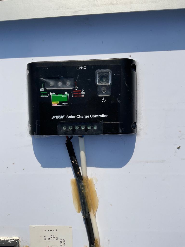 Portable solar panel with charge controller, in good working order. Suitable for a caravan, boat, motorhome or van conversion.