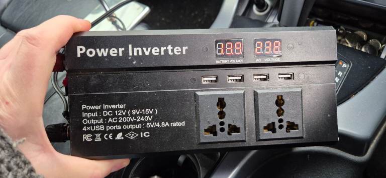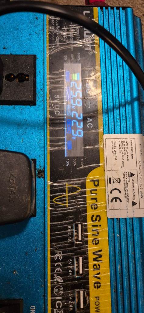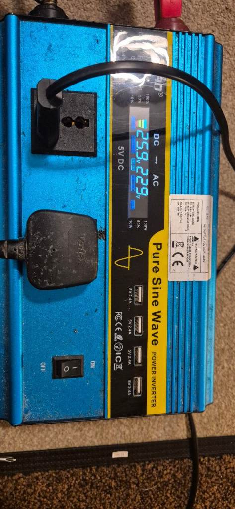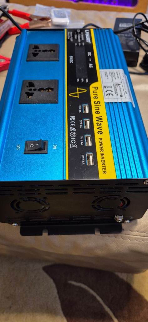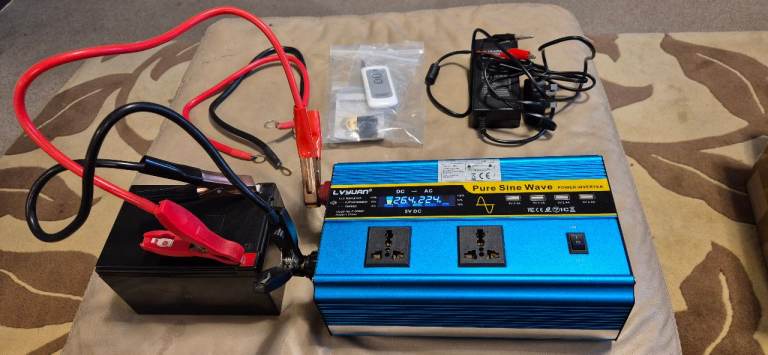 Power inventer 12V and 24V to 230V with portable battery 24V and charger.