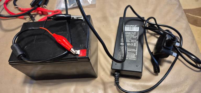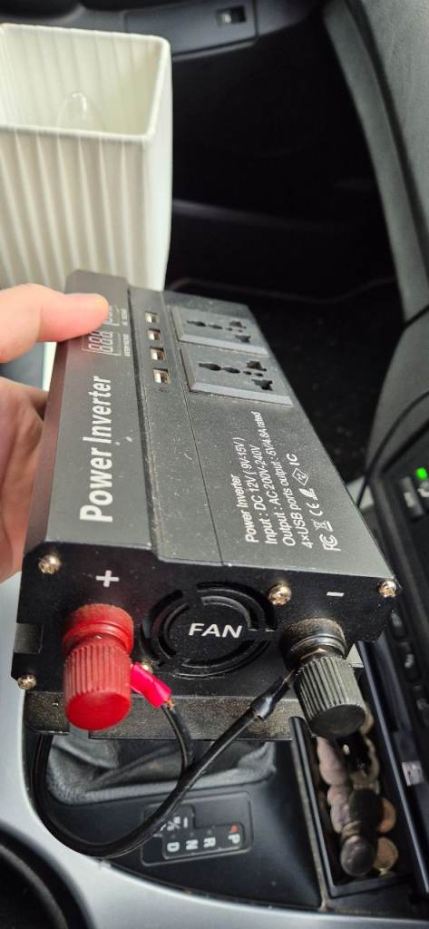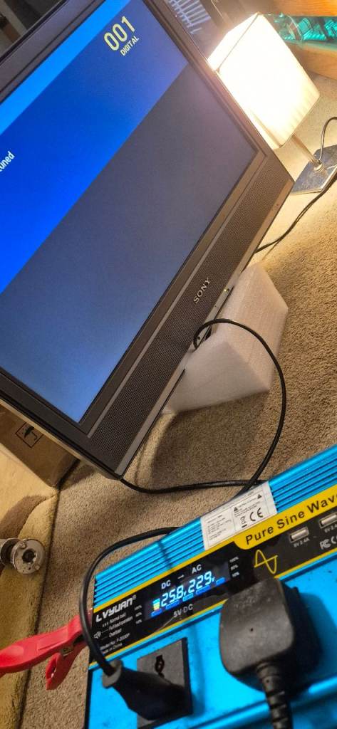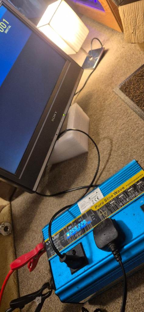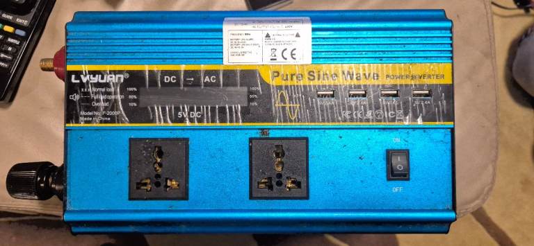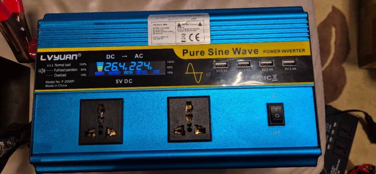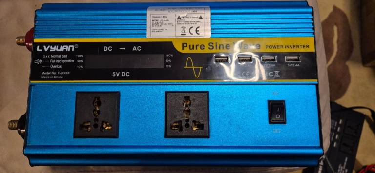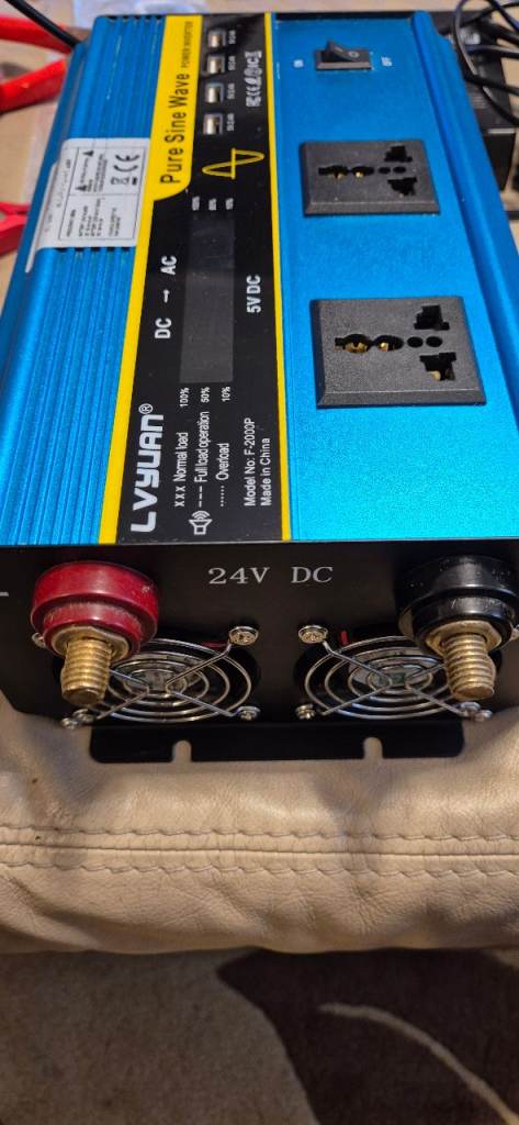 Power inventer 12V and 24V to 230V with portable battery 24V and charger.