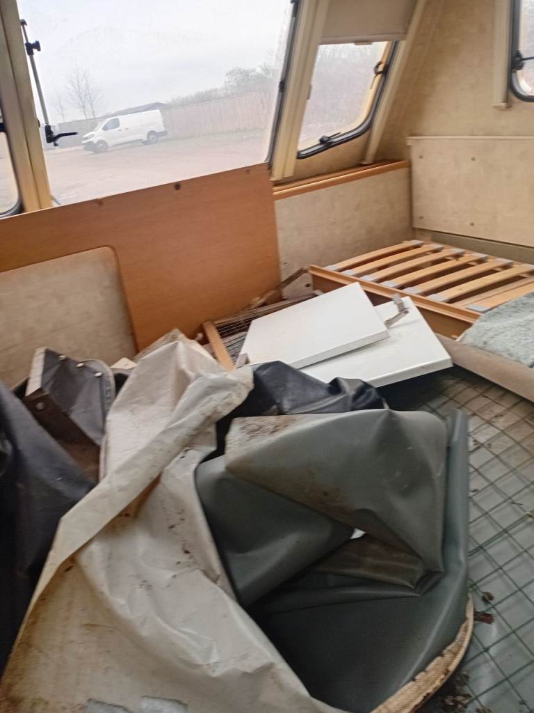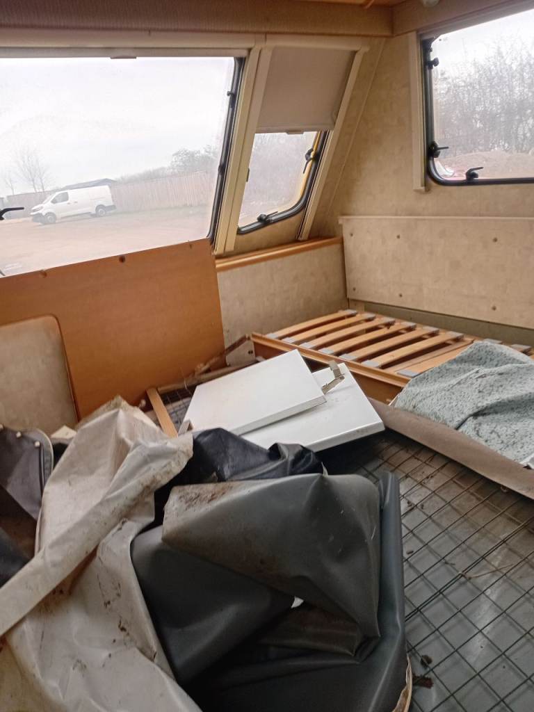 REAVDERTISED TIMEWASTER STERLING ECCLES 1995 540 TWIN AXLE CARAVAN FULLY STRIPPED OUT INSIDE PART KITCHEN UPRIGHT FRIDGE FREEZER WORKING FULL AWNING WITH WINTER POLES IF LOCAL TO POCKLINGTON PLEASE COME VIEW WILL NEED A MARKER BOARD 12 VOLT ELECTRICS DON'T WORK WOULD BE IDEAL FOR STORAGE JUST NEEDS EMPTYING OUT NOTHING FASTENED IN PART FROM FRIDGE FREEZER AND PART KITCHEN 400 if gone buy weekend 275