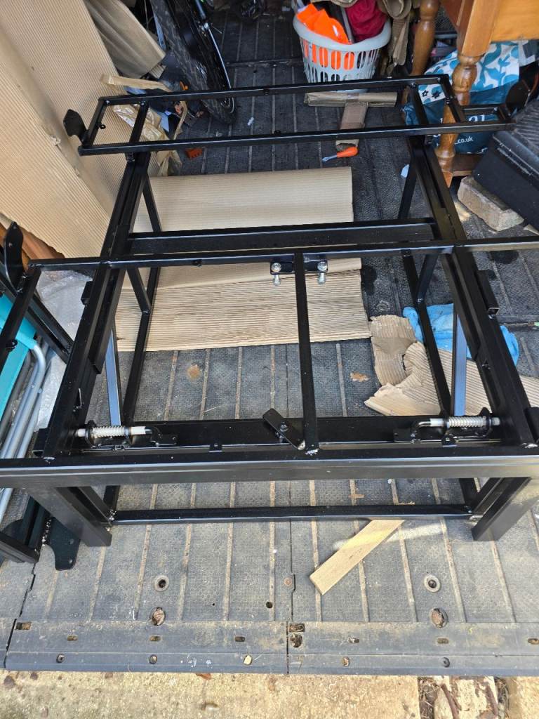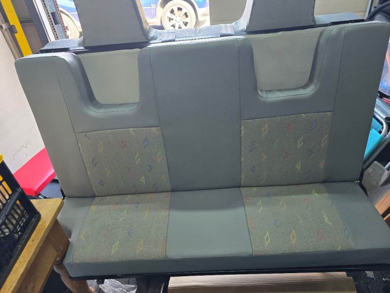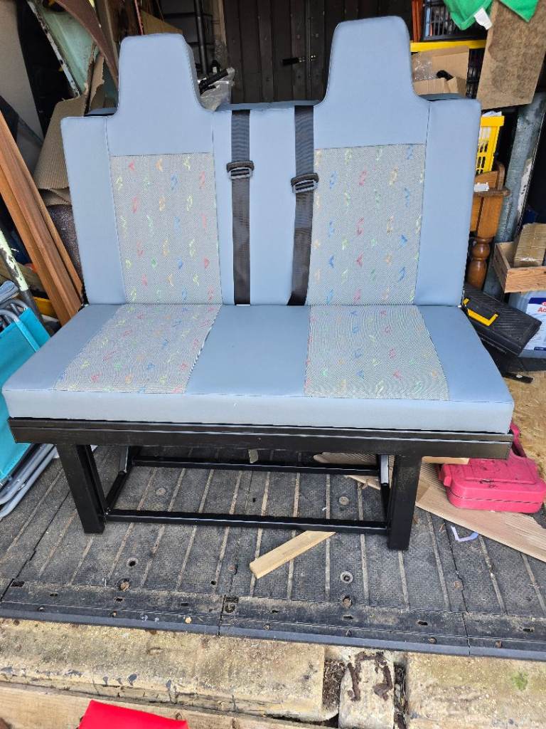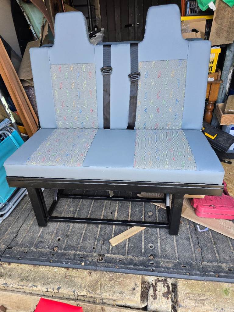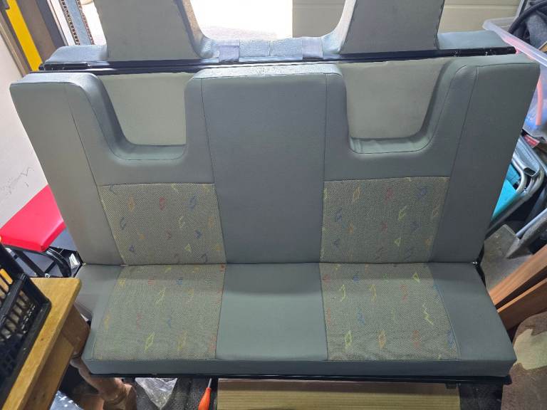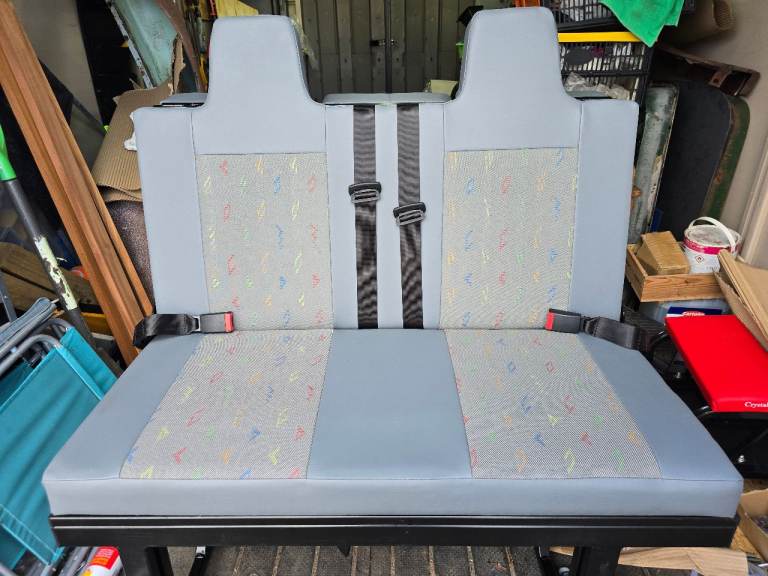 A 3/4 width rock and roll bed with 2 inertia seat belts. Powder coated frame. Cushions are in VW plaice trim built in head rests. Will fit all transporter from T4 to T6. Will also fit many other camper conversions. Collection only