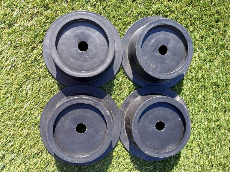 A set of 4 stacking pads. Each one is 4.5cms high and can be used individually or stacked on top of each other. Strong, lightweight and easy to clean. Reduces the need to carry wooden blocks and are lighter.