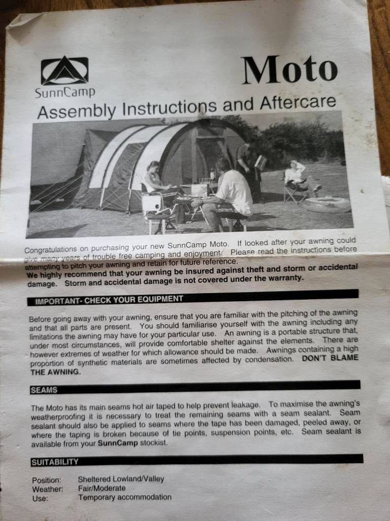 Posting for 12+ yearsSunnCamp Moto Awning - NO POLES