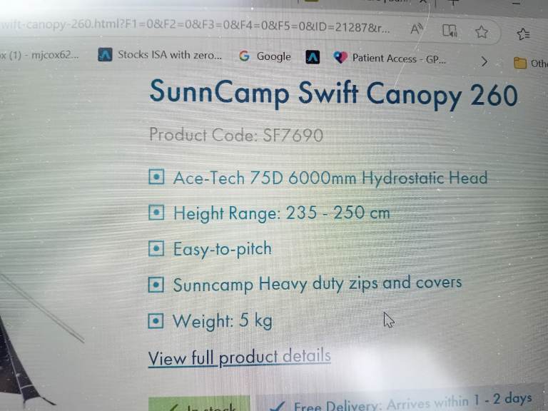 Posting for 8+ yearsSunncamp Swift Canopy 260