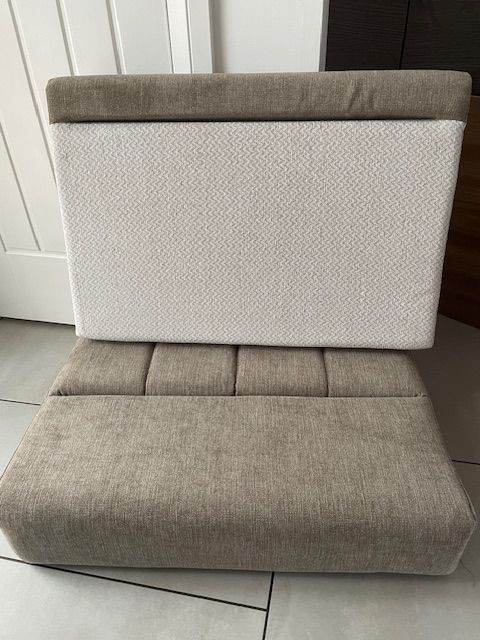 Wrap around seating set for 2018 Swift Conqueror. Set consists of Seat Cushion, Seat Backrest and baseboard. Replaces central drawer unit to provide full wrap around seating and a wider bed when made up. New, never used in the caravan.