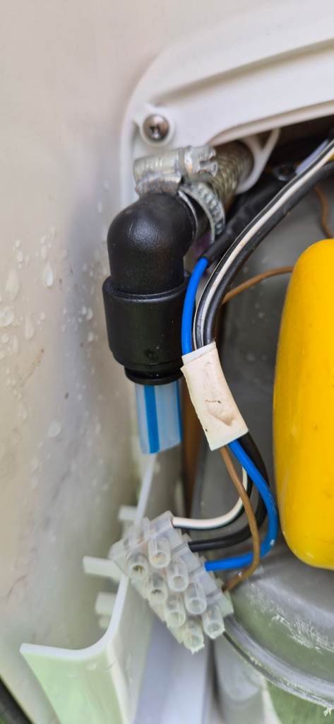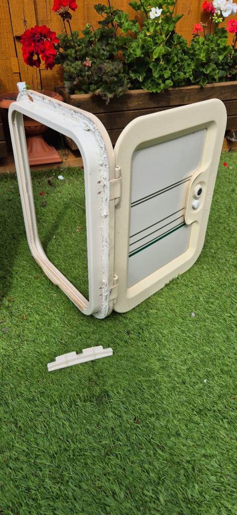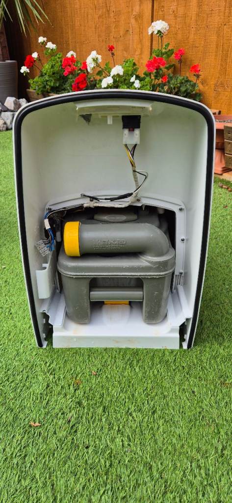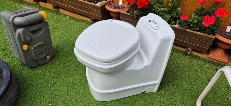 This model hasn't got own water tank and has to be permanently connected to the water system in caravan. External toilet door with frame included.