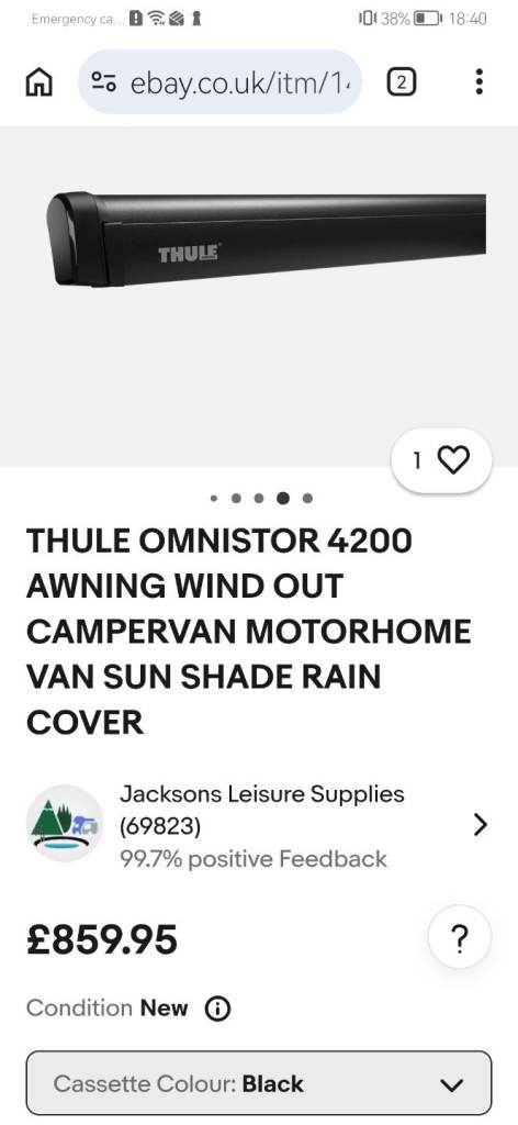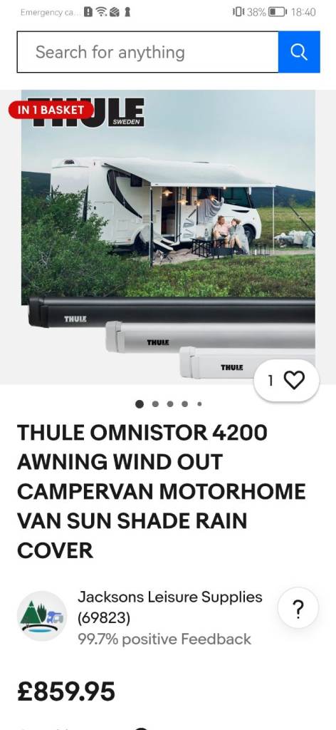 I bought this before Christmas and found out it was the wrong size for my van. Can't return this late. Brand new Thule 4200 4m awning still in the original plastic sealing. Lots of info online if you search the name. Its in the black cassette colour. Grab a bargain. May deliver for extra cash. I've just posted photos from Internet as its still in factory wrapping.