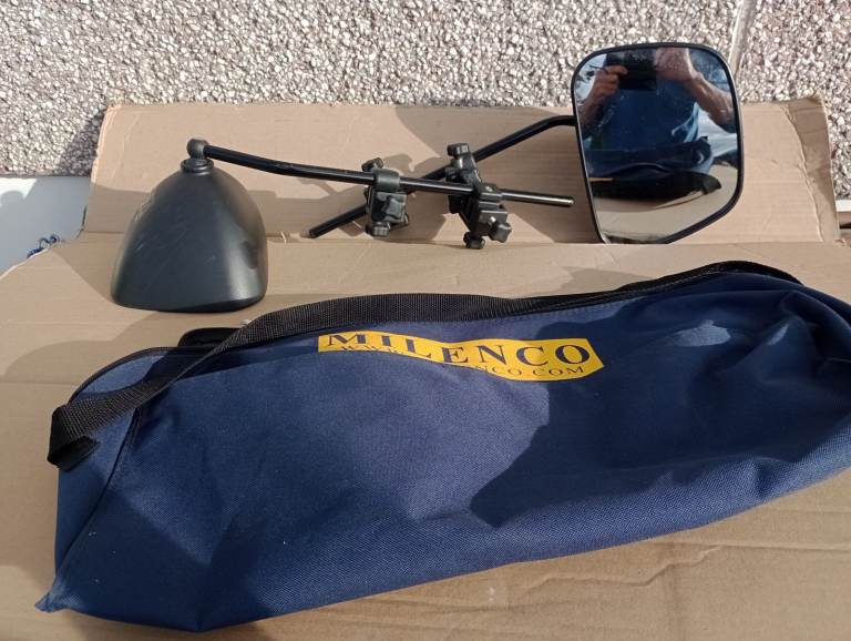Pair of Milenco Grand Aero 4 (standard) towing mirrors. Not much used and in very good condition, as new. Excellent view from both and very stable when towing.