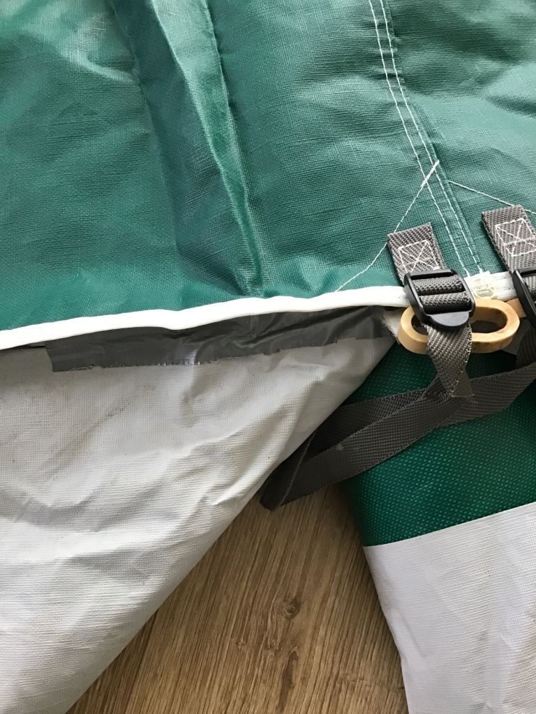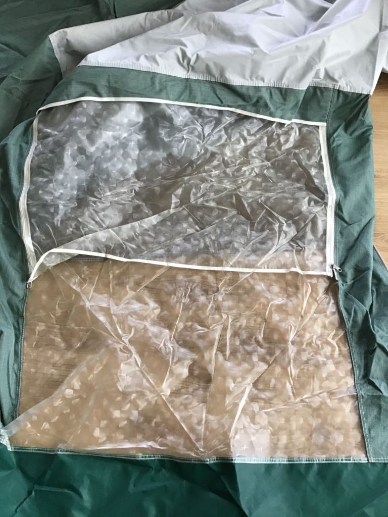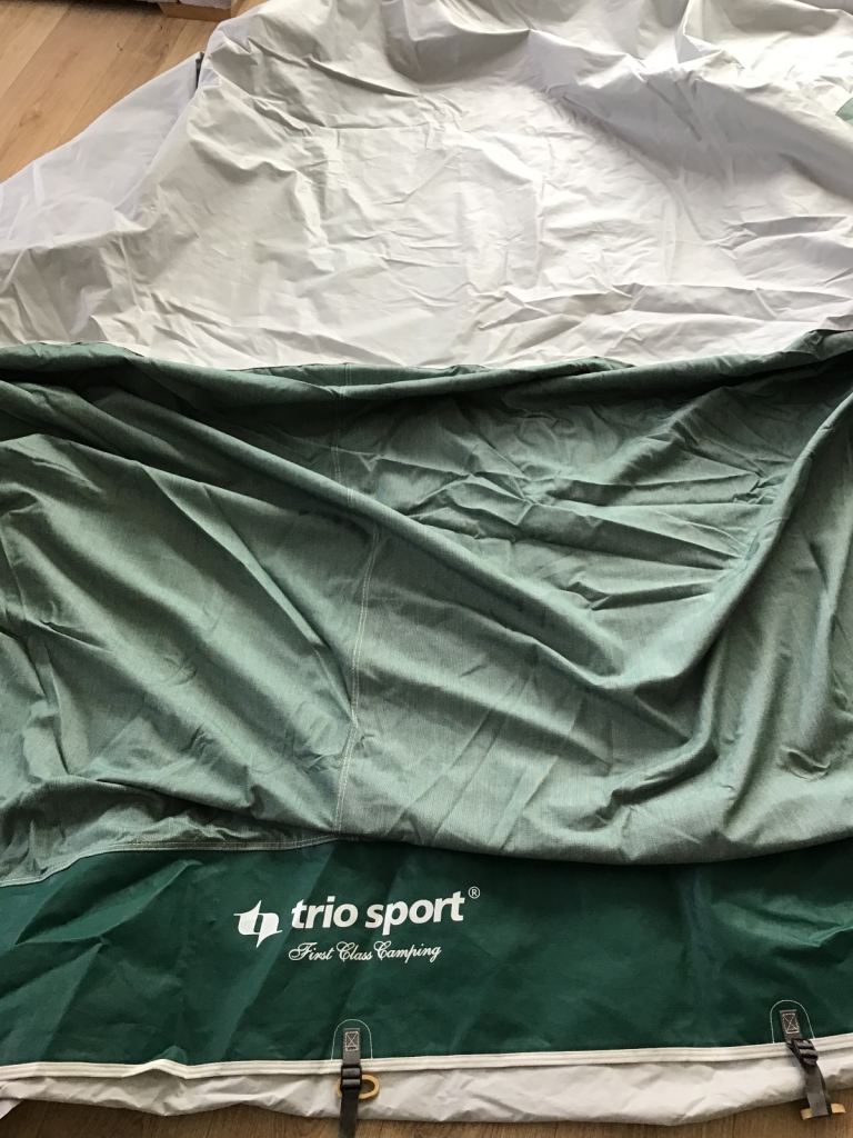 Tall green awning annex or extension to suit Trio sport or others with YKK zip 545cm doorway. Metal poles with good quality canvas outer. ( not suitable for air beam awnings) Very good condition apart from a small tear in the skirt. Won’t really affect the watertightness as it’s more of a draft excluder part. Repaired with cloth tape to prevent further damage. Collection only. Comes with poles, no pegs or guide ropes.