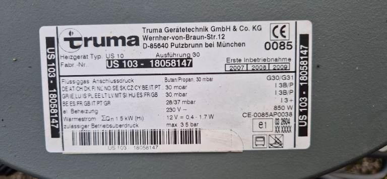 TRUMA US103 ULTRASTORE gas and electric water heater for camper caravan motorhome boat.