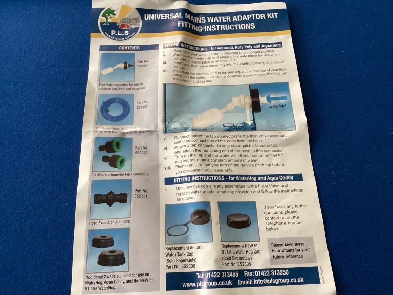 Still in the box the only item of this set to be used is the flow valve part no ES2310 which was put in the water containers , all the other items have never been used ,fabulous kit for caravan ,in the box all required plus the instructions .