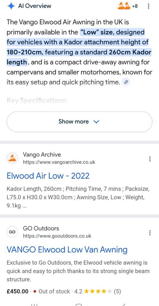 Posting for 2+ yearsVango air awning elwood with pump and accessories