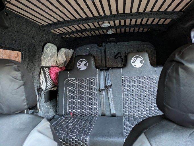 Fully upholstered in your choice of colours/patten and materials to match your front seat covers or else you might want it to match.