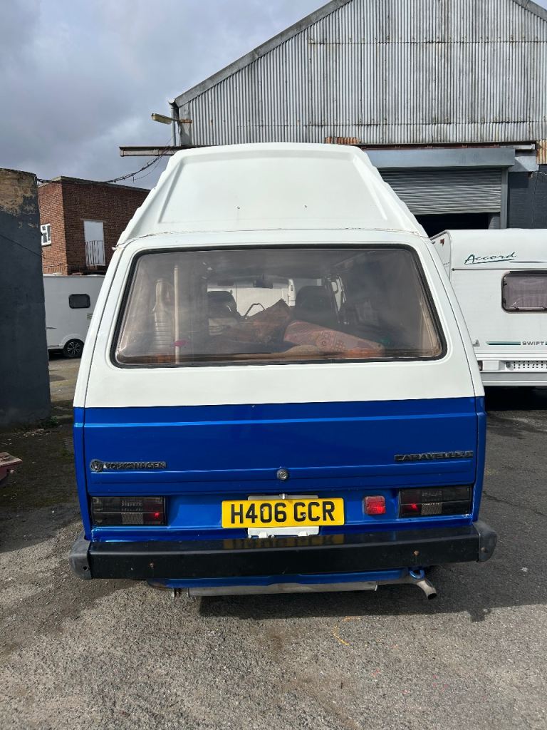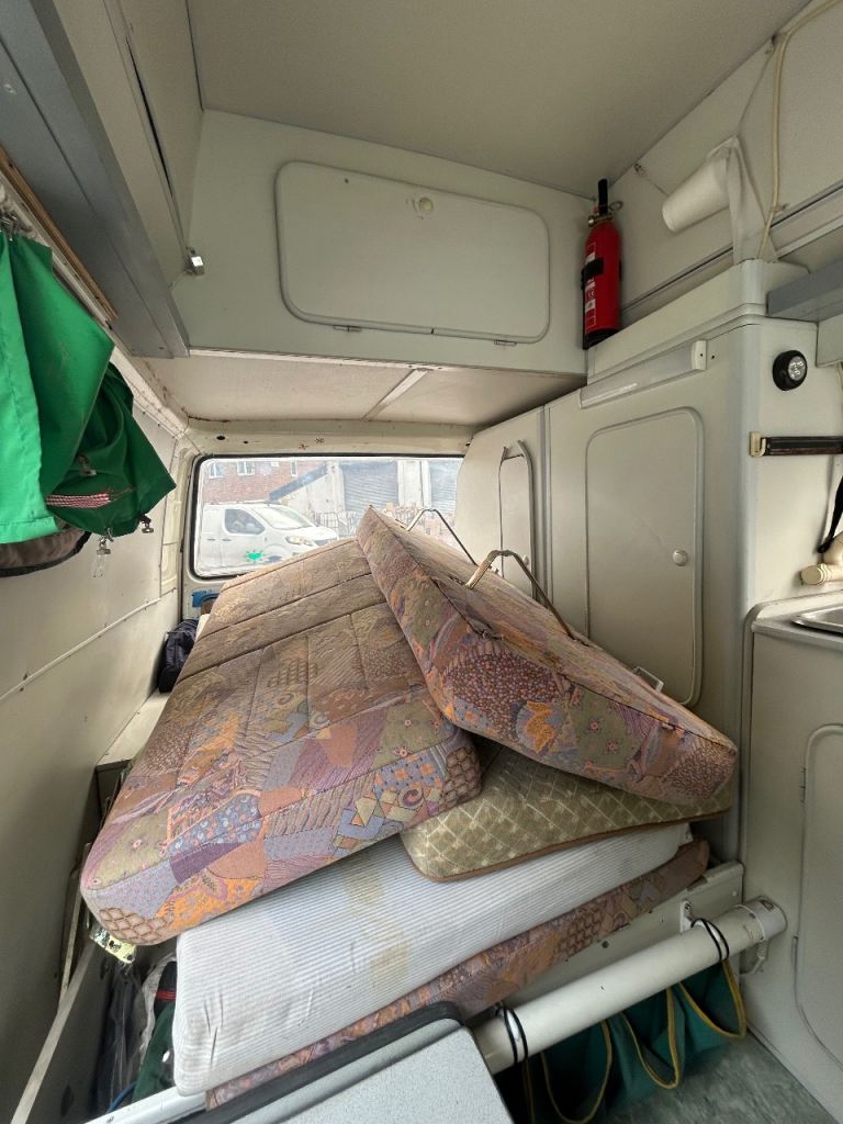 Camper conversion good points. No rust. Engine just had new head starts first time double gazed windows. Water tanks waste tank heater swivel front seats newish tyres gas bottle side awning great storage BAD points needs mot fridge not working I have a spare one. Rock and roll bed needs recovering and a general tlc don’t call asking loads questions come see it drive it great looking van. Reason for selling. I haven’t used it for a few years so it’s time to go
