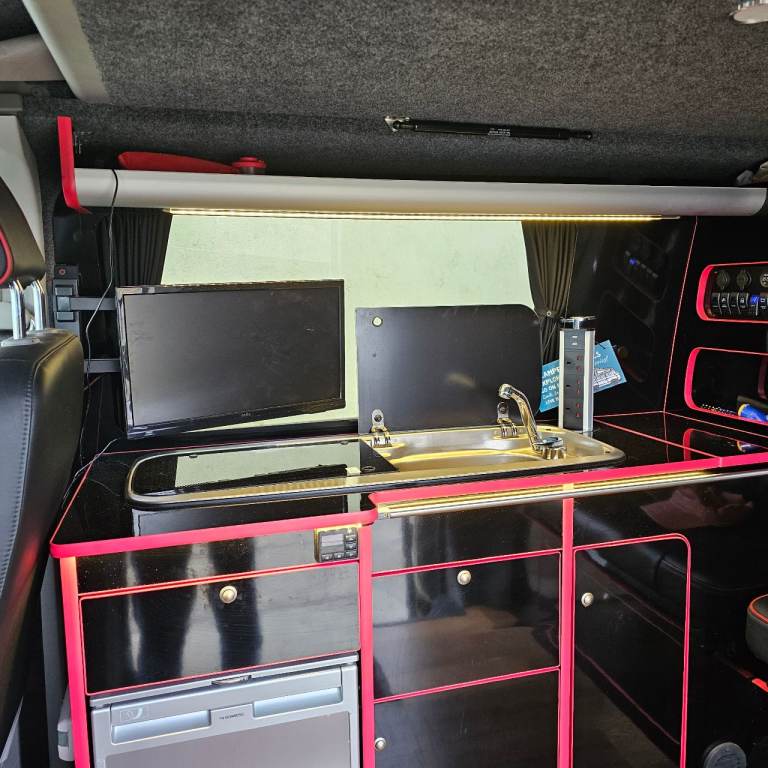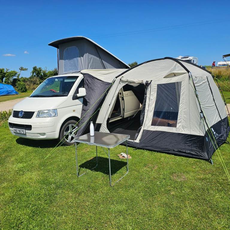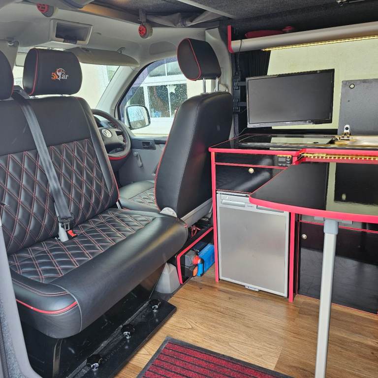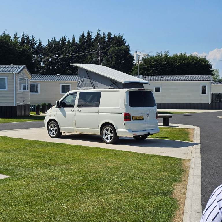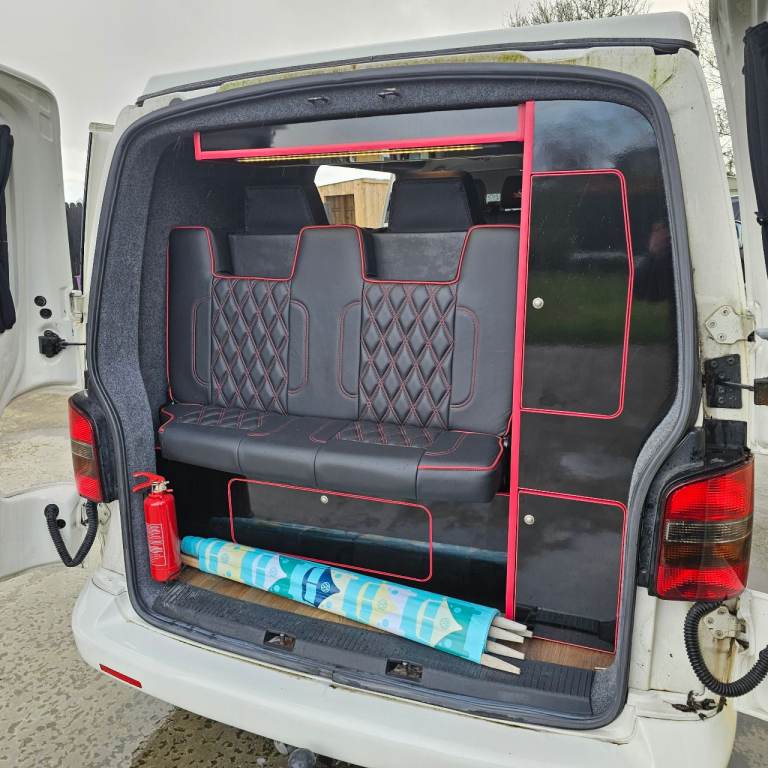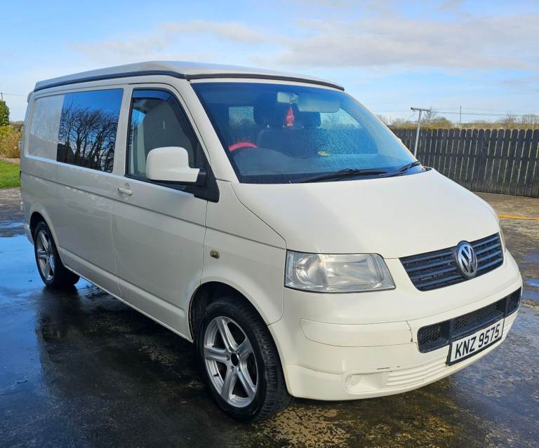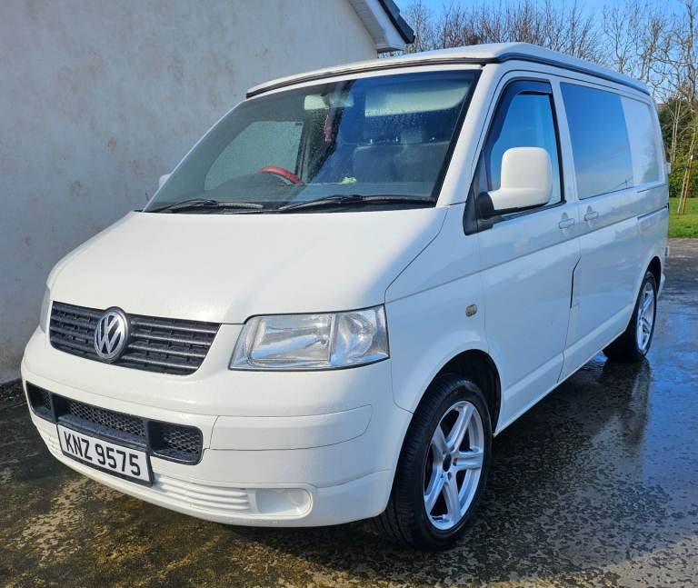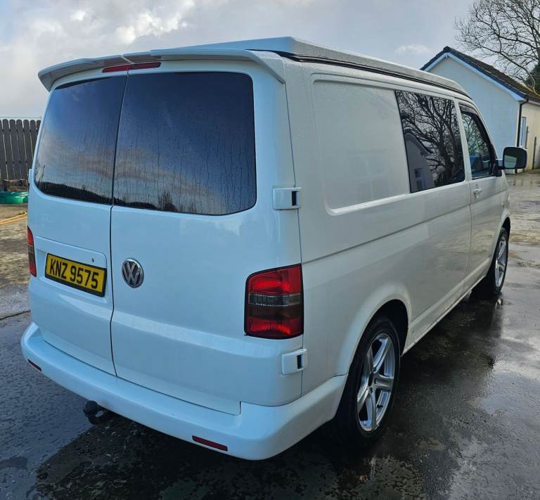 T5 campervan, 190k miles. Pop up roof, rock and roll bed, sink, hob, fridge, rotating front twin seat, pop up sockets, table. Entire rear of van re-painted. New alloys and tyres. New shocks fitted. 3no. New sports batteries. Comes with tent as per images.
