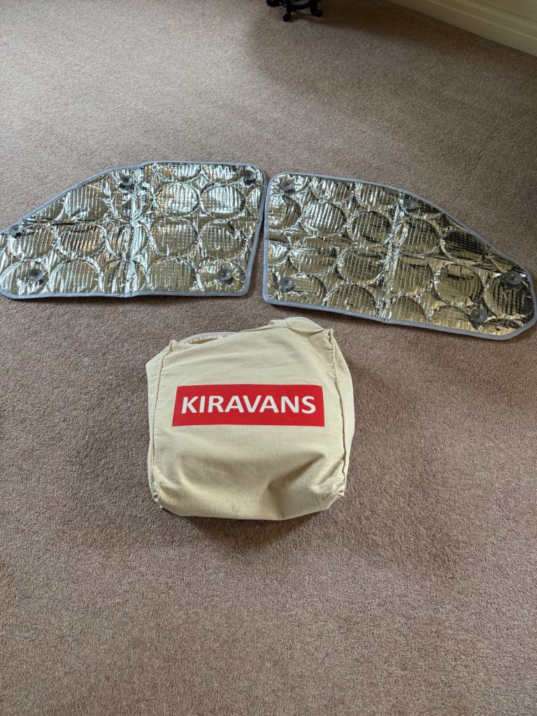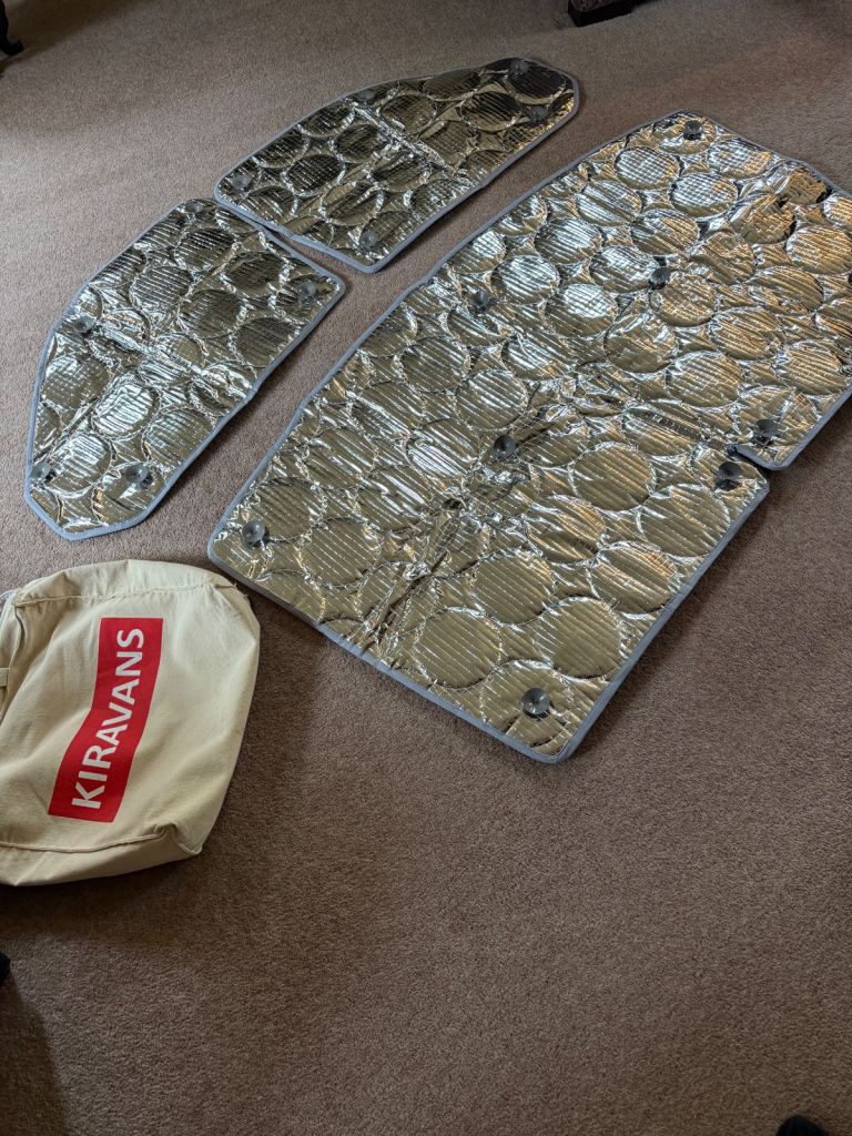 KIRAVANS-Campervan Sucker Internal Thermal Cab Window Screen Set – 4-Layer Silver Insulation Covers - used a few times on a T5.1.