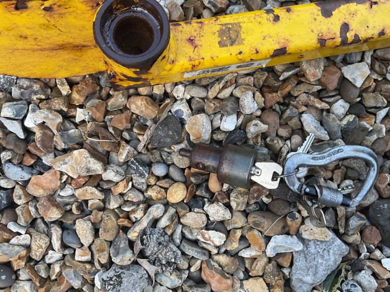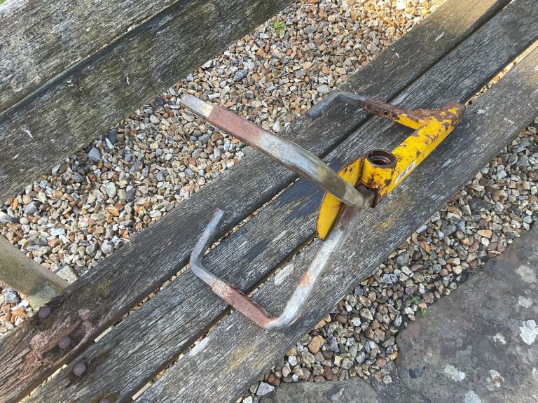 Locking wheel clamp , adjustable so suits for example , trailer , caravan , car , basically lots of applications , needs a lick of paint if you want but works fine as it should , open to sensible offer