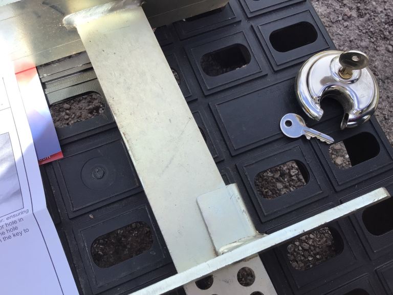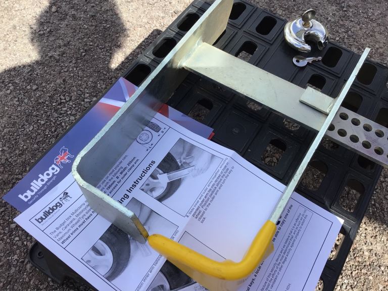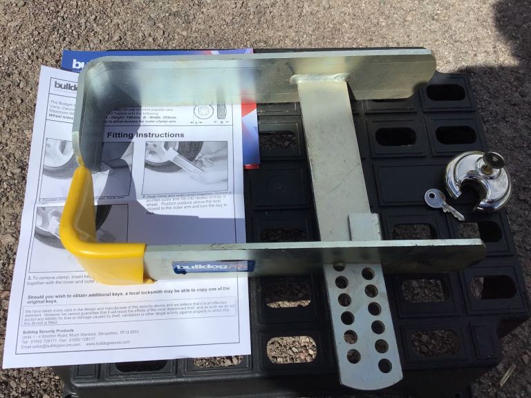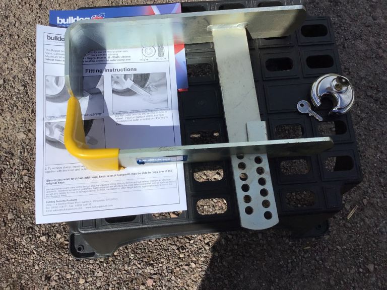 Bulldog wheel lock. 2 x keys to padlock. Nearly new.
