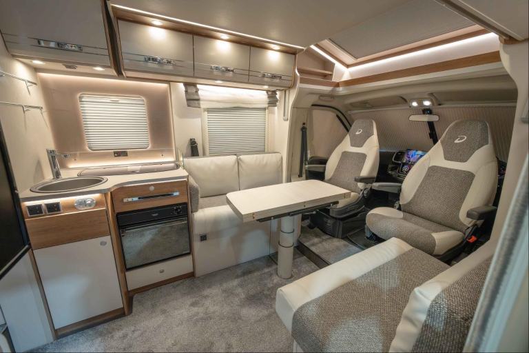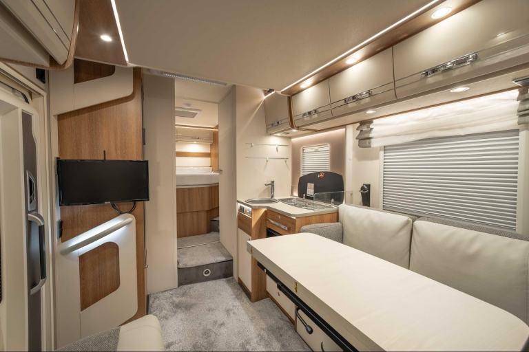 Built with active families in mind, the T7057 makes life on the road so much fun. Spacious living areas, generous comfortable beds, beautifully appointed kitchen and bathroom facilities and a good sized garage make this Dethleffs motorhome perfect for discovering the world in sheer comfort.
