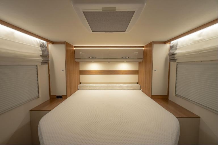 Having only covered 5,847 miles from new, the motorhome is in as-new condition. This version of the T7057 features the highly desirable rear fixed island bed along with the Lippert electric drop down bed with a memory foam mattress at the front. Extra sleeping space is gained by converting the lounge seating area giving you a true 6 berth motorhome.