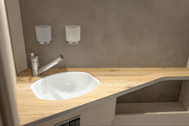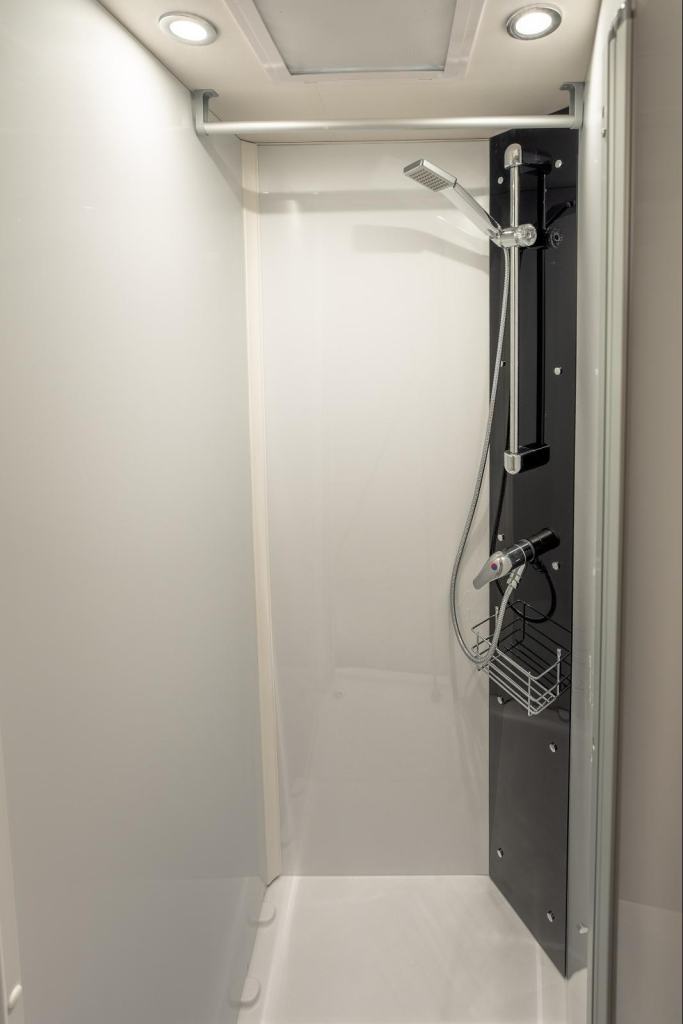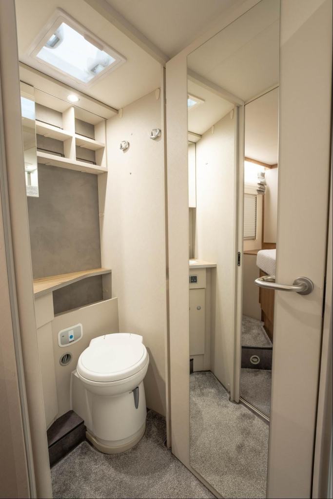 Spacious Bathroom With Thetford Electric Flush Toilet And Hand Wash Basin