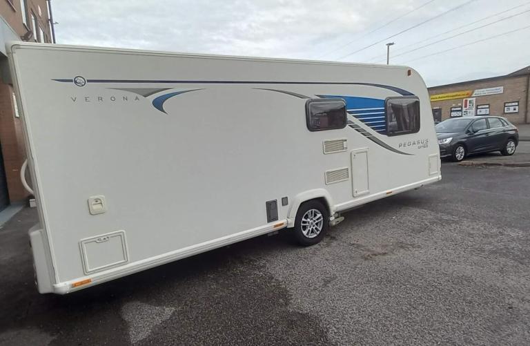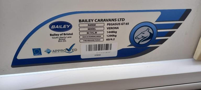THIS BAILEY VERONA IS A 4 BERTH WITH A FRENCH BED AND END WASHROOM WITH CASSETTE TOILET AND SHOWER CLOTH UPHOLSTERY AND A FULLY EQUIPPED KITCHEN INCLUDING - HOB - MICROWAVE - FRIDGEFREEZER - LOADS OF CUPBOARD SPACE- OUTSIDE GAS BBQ POINT - SUNROOF - WATER HEATER - BLINDS AND FLYSCREEN - DOUBLE GLAZING - AMPLE STORAGE - TV AERIAL-MOTOR MOVER