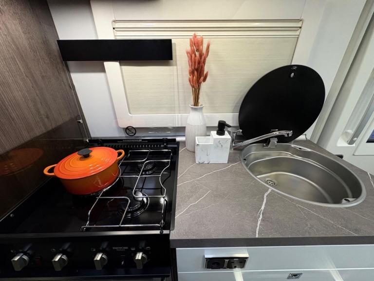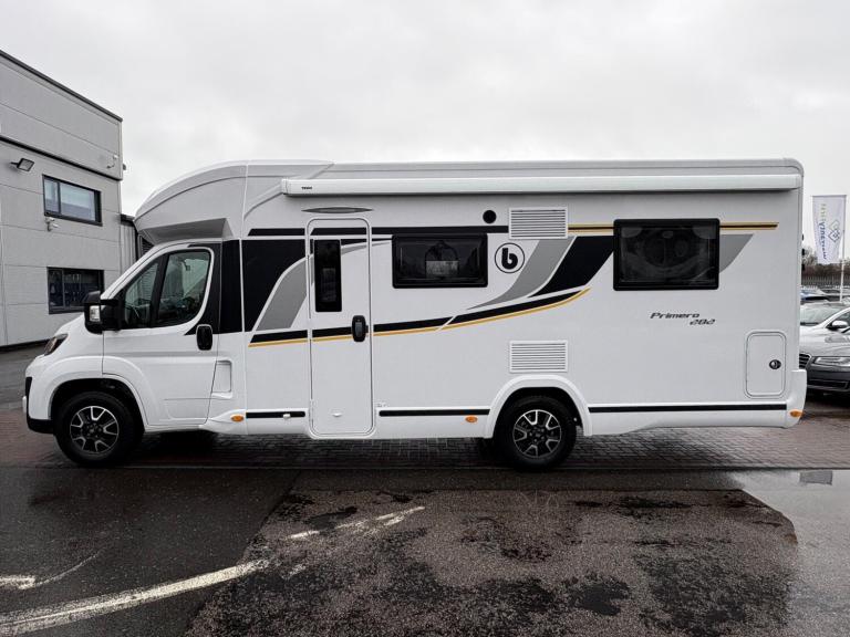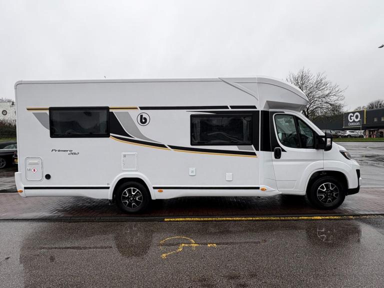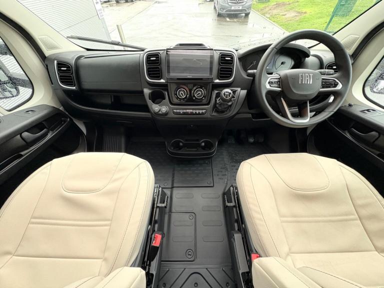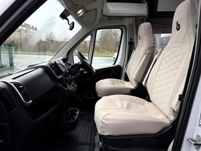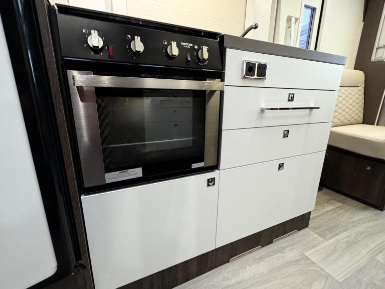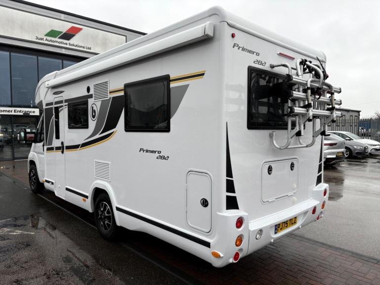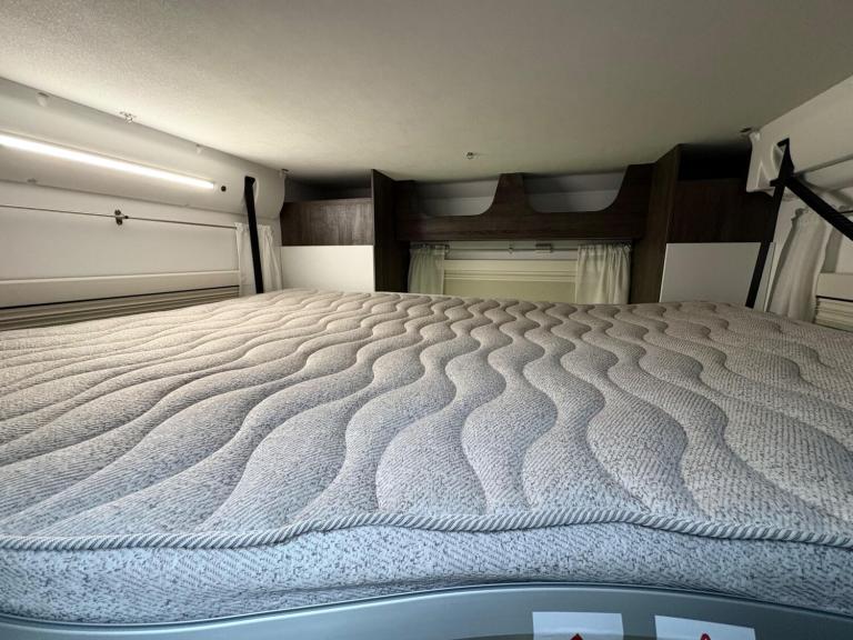 A rare 6 berth and 4 belt model with 2 electric drop down beds, one at the front and one at the back and a lounge conversion to comfortably fit 6. An end U shaped lounge and a large dining area. Practically brand new in condition and has hardly been used. Lots of living space and a large bathroom with a toilet and a shower. A large fridge with a separate freezer, Truma heating, an external awning and bike rack, fitted blinds and front cab curtains.For more information call 01522 246777.
