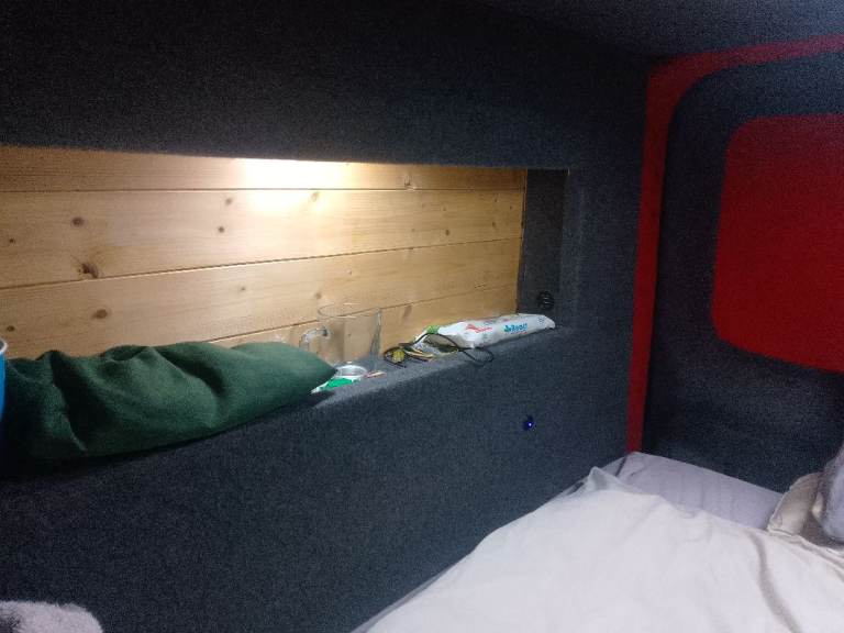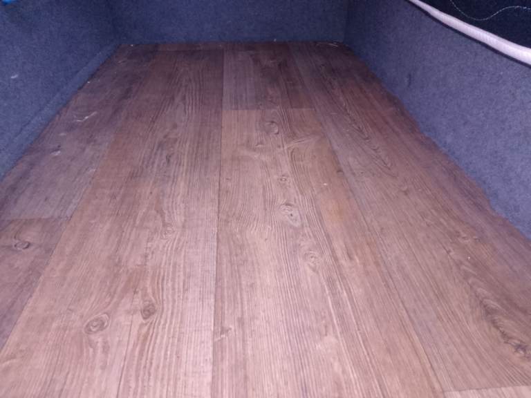 Interior conversion includes a bed setup, insulated and carpet-lined rear, rear lighting, leisure battery setup, and Android Auto head unit.