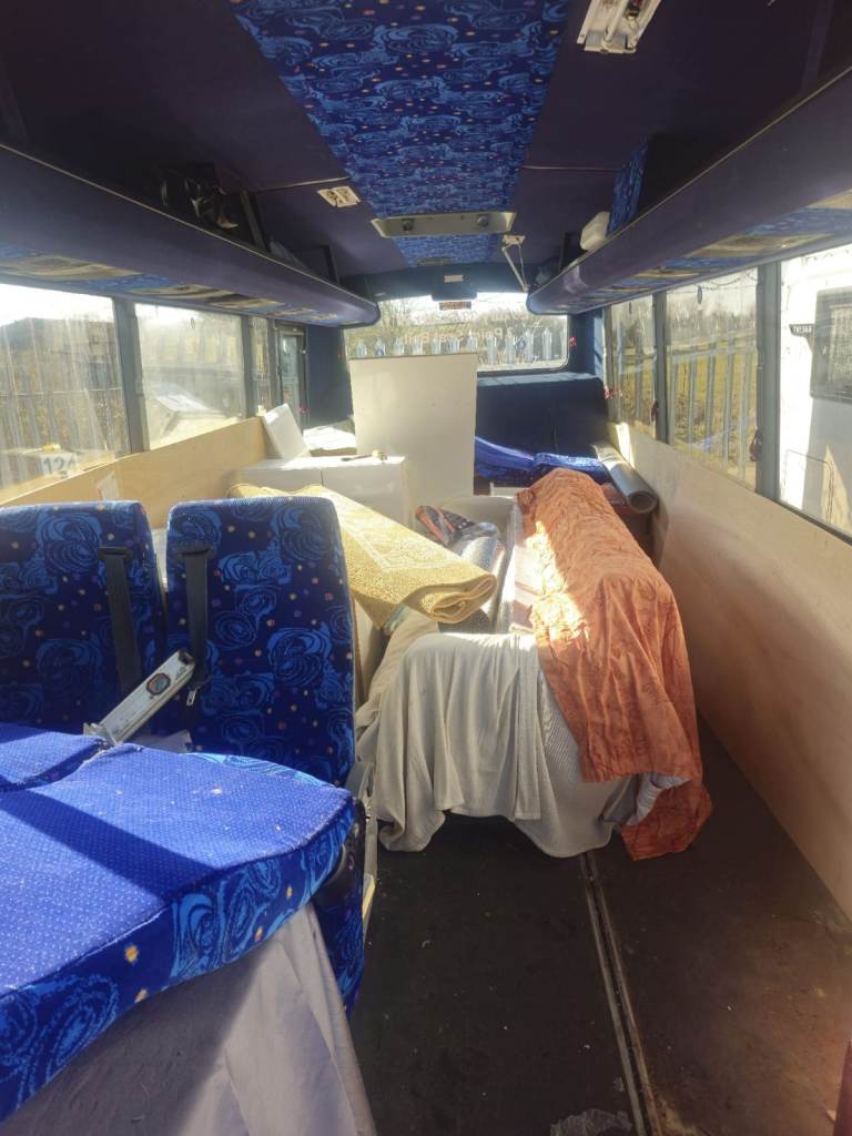 Bus is stripped out of seat so is an open book ready to be fitted .Lots of space for full size cabinets bed ect all come with the bus.