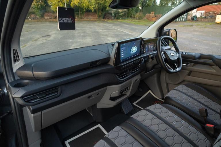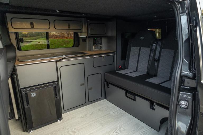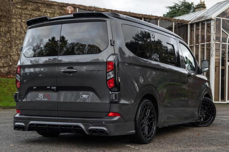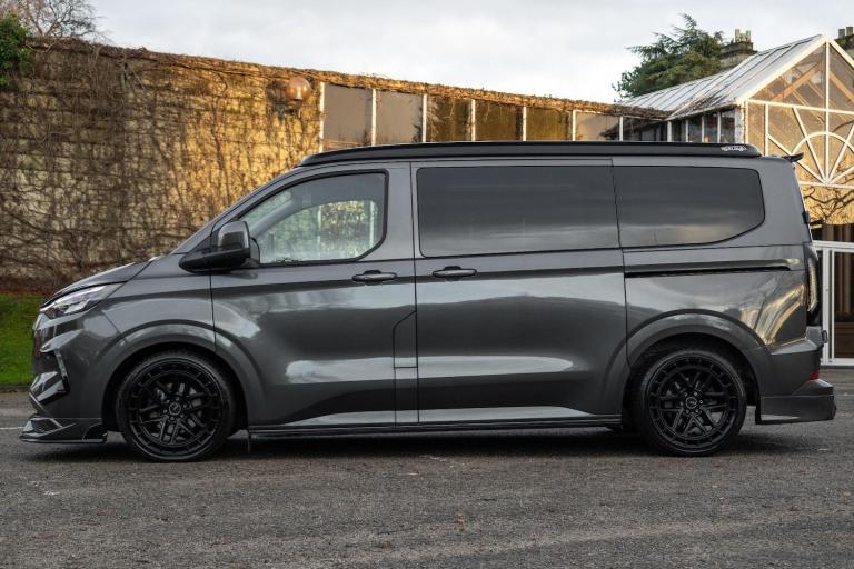 THE 2024 FORD TRANSIT CUSTOM POPTOP CAMPER VAN IS A FULLY EQUIPPED, LOW-MILEAGE CAMPER FEATURING A 2.0L DIESEL ENGINE, SMOOTH 8-SPEED AUTOMATIC GEARBOX, JUST 4,250 MILES, FULL SERVICE HISTORY, AND FORD WARRANTY UNTIL SEPTEMBER 2027. IT INCLUDES A MATTE STEEL KITCHEN WITH OAK-STYLE WORKTOP AND TABLE, 50L COMPRESSOR FRIDGE, SMEV 9222 DUAL HOB AND SINK, ALTRO FLOORING, WESTDUBZ POPTOP ROOF WITH SCENIC CANVAS, VULCAN M1 TESTED BED, UPGRADED DRIVER’S WING-BACK SEAT, CUSTOM BLACK AND GREY UPHOLSTERY, DIESEL NIGHT HEATER, BLINDS TO ALL WINDOWS, FULL CARPET LINING, DACRON WARMTH AND SOUND INSULATION, LED SPOT LIGHTS, SPLIT-CHARGE SYSTEM, 110AH LEISURE BATTERY, BATTERY CHARGER, EXTERNAL 240V HOOK-UP AND TWIN 240V PLUG SOCKETS. EXTERIOR UPGRADES INCLUDE 20” CALIBRE ALLOYS, LOWERING SPRINGS, GLOSS BLACK GRILLE, XC FRONT AND REAR BUMPERS, CANARD TRIMS, SIDE SKIRTS AND REAR SPOILER. MODERN DRIVING AND COMFORT FEATURES INCLUDE A/C, FRONT AND REAR PARKING SENSORS, REAR CAMERA, ELECTRIC HEATED MIRRORS, HEATED SEATS, KEYLESS ENTRY AND START WITH SAFELOCK, LED FRONT AND REAR LIGHTS, AUTO HEADLIGHTS, MULTI-FUNCTIONAL STEERING WHEEL, DIGITAL DASH, CRUISE CONTROL, APPLE CARPLAY, DAB RADIO, USB-C AND HANDS-FREE CONNECTIVITY AND LOTS MORE