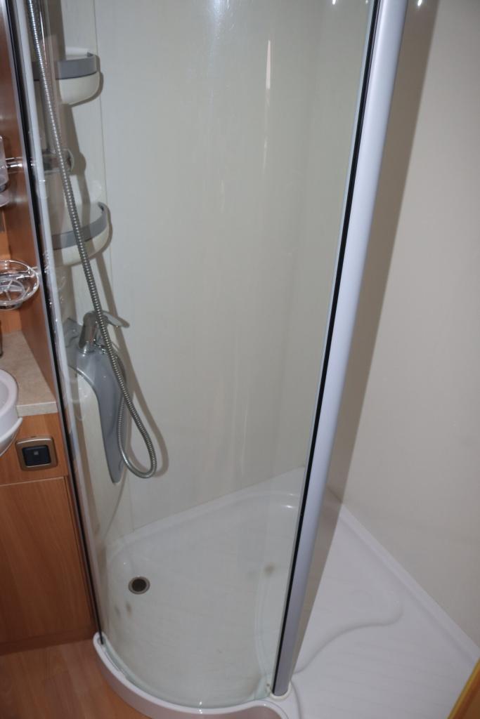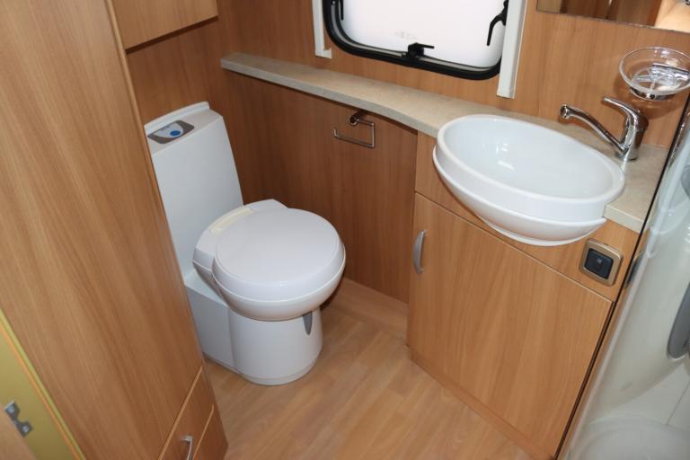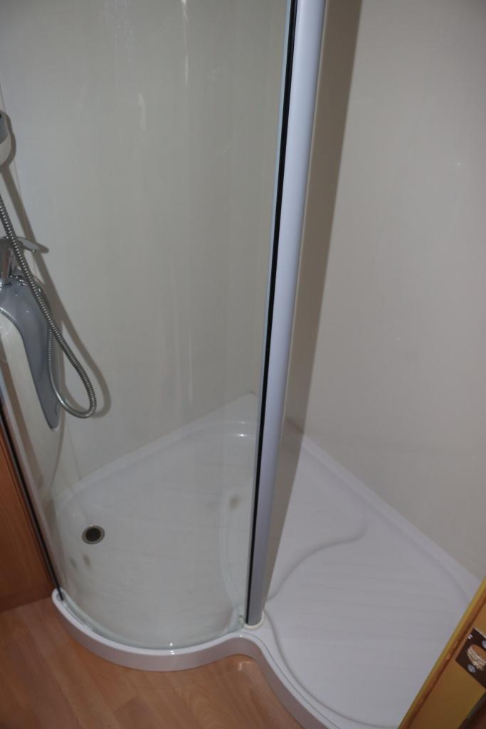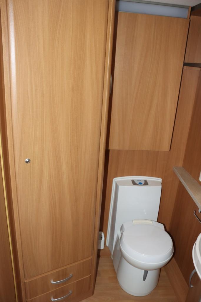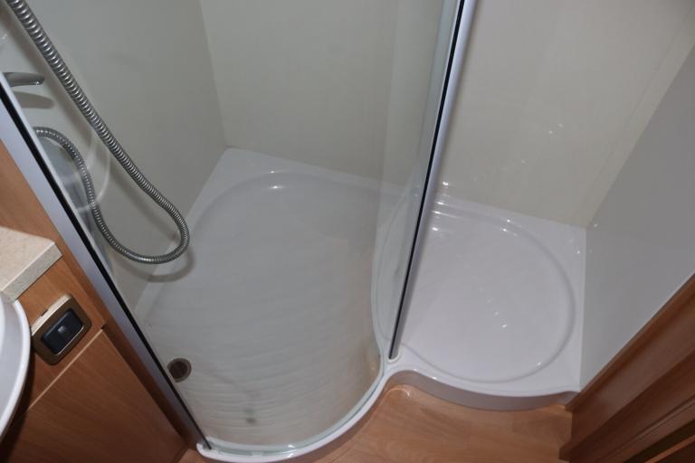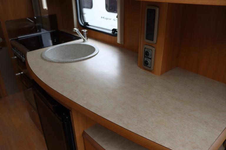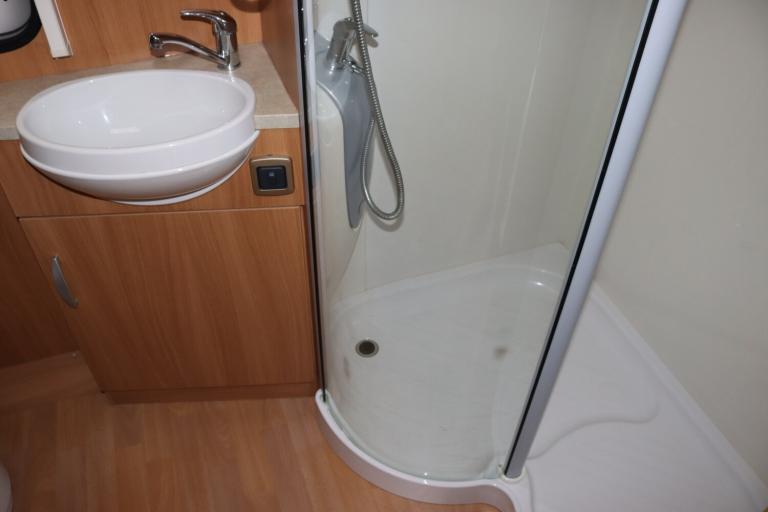 In the kitchen area there is a oven, grill, 3 gas hobs and one electric hob, microwave and a large 3 way fridge with freezer compartment. Plenty of work top space. Seating area at the front of the caravan makes into a double bed. There is a seating area in the middle of the caravan that can convert into a single bed or bunk beds (optional). There is convenient storage underneath seating area at the front of the van and in the middle of the van, with storage in the overhead lockers (aircraft style overhead locker system with split level storage). At the rear end of the van there is an end washroom with a toilet and a separate shower. The caravan provides blow air heating and water heating (operates on either gas or electric), blinds and screens to windows and rooflights, TV Aerial, two part exterior door with door flyscreen. Has AL-KO Stabiliser, alloy wheels, external storage locker, external/awning light and spare wheel.
