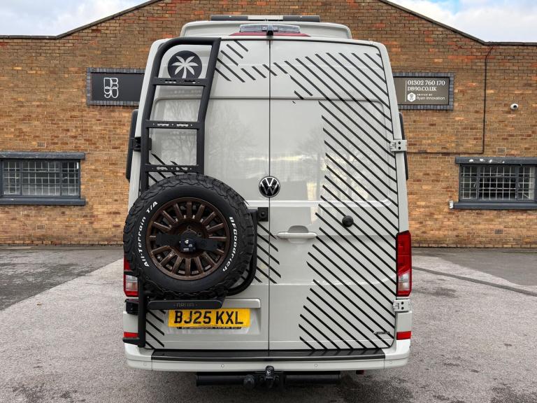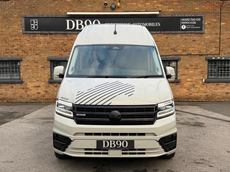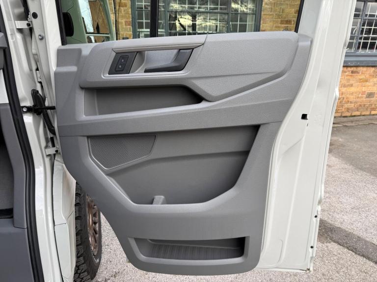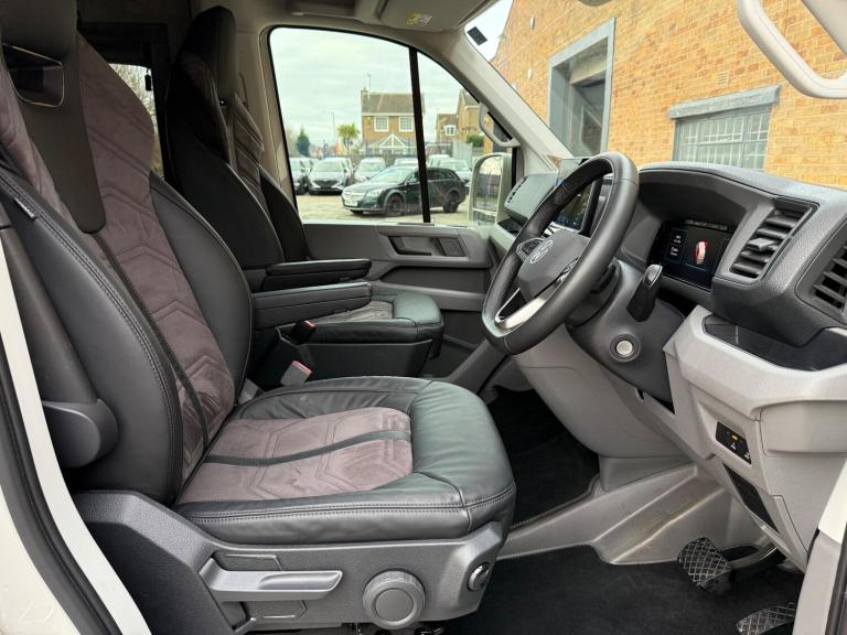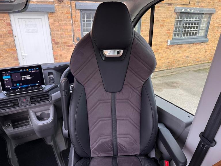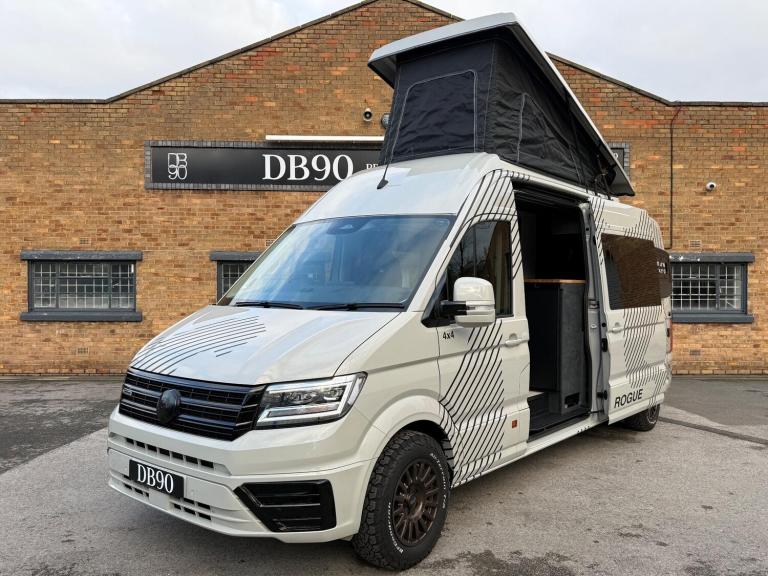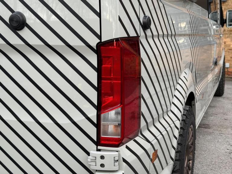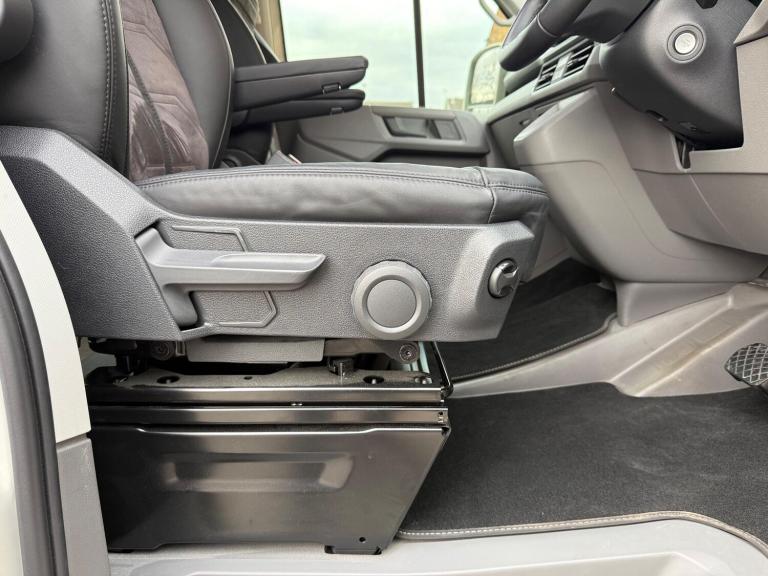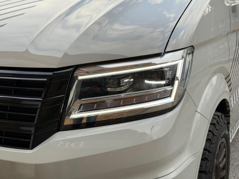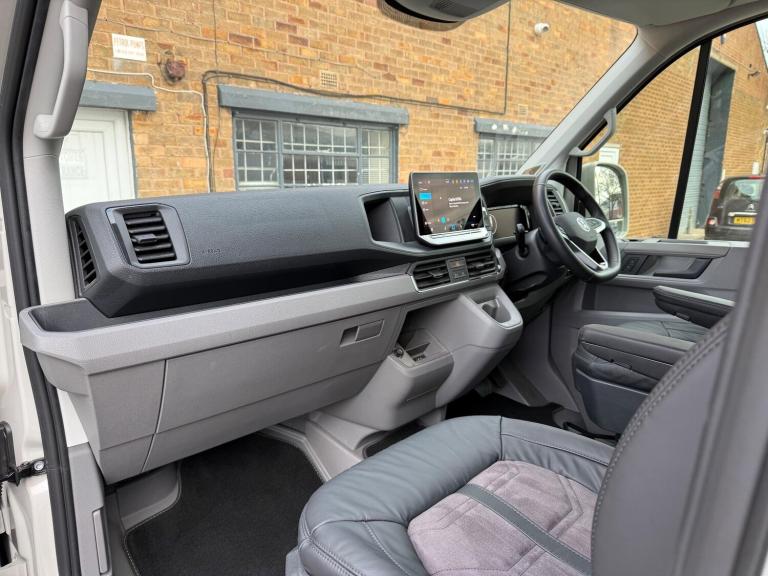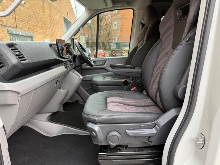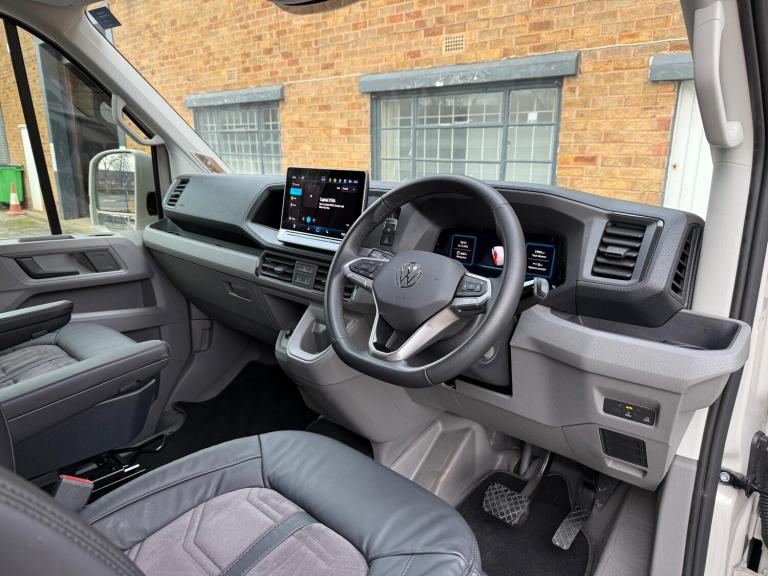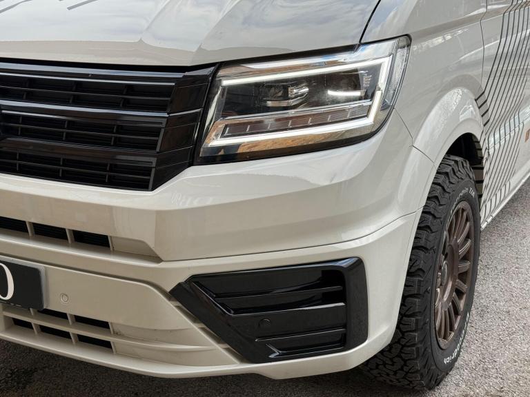 We're Proud to present his exceptional 2025 Volkswagen Crafter 4Motion Campervan, finished in Ascot Grey, this is a true all-season, off-grid adventure camper with just 1,995 miles, one owner, and a VW Service Plan. 177bhp 2.0 TDI Euro 6 engine with 4Motion four-wheel drive system. This Crafter is equally at home on the motorway, mountain passes, muddy campsites or remote destinations offering flexible sleeping for up to 5.Upgrades, Heated Fine Nappa Leather Sport Seats, Heated leather multi-function steering wheel, Heated windscreen, Swivelling driver & passenger seats, LED headlights with separate LED daytime running lights, Rear view camera, Alpine speaker upgrade, SavvyVan 3 5 touchscreen with Bluetooth, Tinted windows throughout. Atek elevating roof with double bed & ladder, Rear double bed boxes with aluminium slatted frame, RIB bed system, Alcantara fabric wall lining, RS fabric roof lining with embossed suede, LED ambient lighting with independent dimmer control, Kitchen & Dining, A beautifully finished practical kitchen area designed for real use, Oak kitchen worktop, Kitchen pod with soft-close drawers, Altro wood safety bleached oak flooring, Stirling induction hob, D1-90L Microwave, Thetford bowl sink with hot & cold tap, Bamboo swivel table with extension, 240V pop-up socket, Multiple USB & USC Points, wireless 10W charger. Bathroom & Utilities, Full shower pod (760 x 705mm) with roller door & lighting, Toilet, Indoor & outdoor shower hookup, 100L fresh water tank, 70L waste water tank, Truma Combi D4E water & space heater, Off-Grid Capability, Built for independence and extended stays, Clayton 3000 Power Unit with remote, 270W solar panels with inverter, Leisure battery system, 240V hook-up, Insulated floorboard, Sound deadening, ply boarding & carpeted walls/roof. 17 OZ alloy wheels with all-terrain tyres + full-size spare, Fixed towbar, Rear barn doors with gas struts, Van Der Moon rear door panels, Under-bed garage storage, Wheel ladder, CJL leisure side pods with windows, CJL Leisure Safari Blinds.