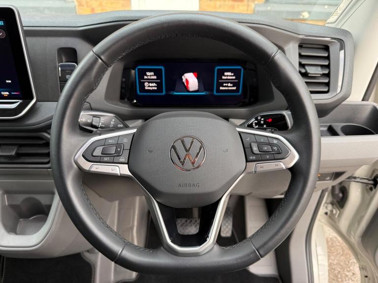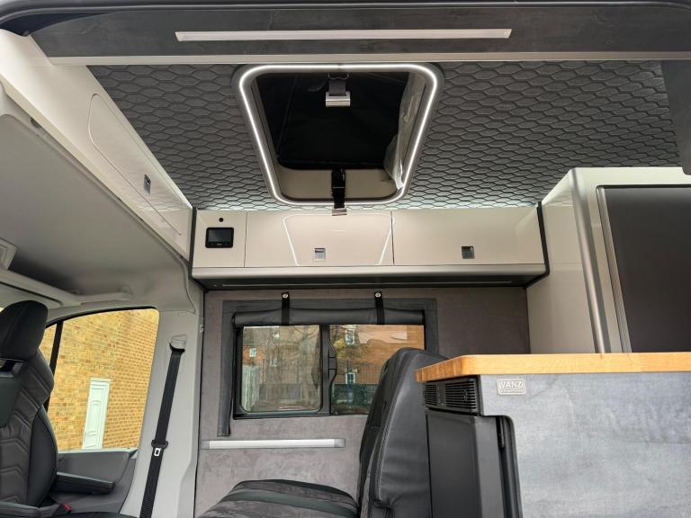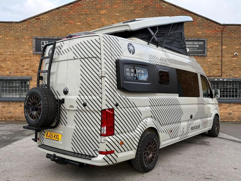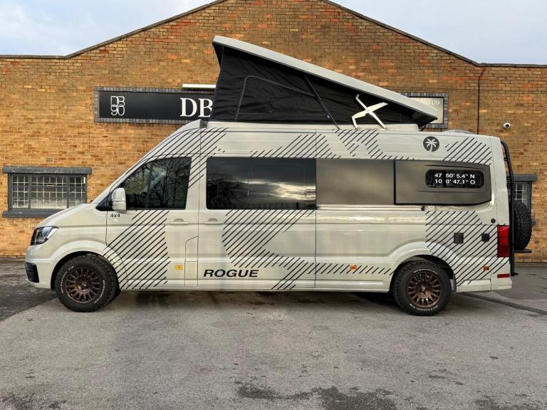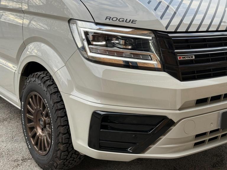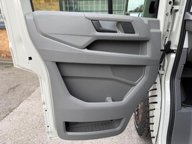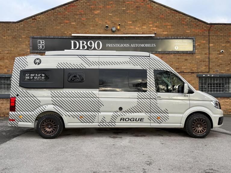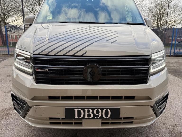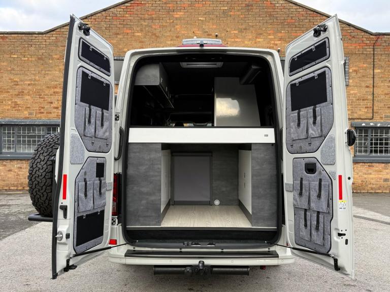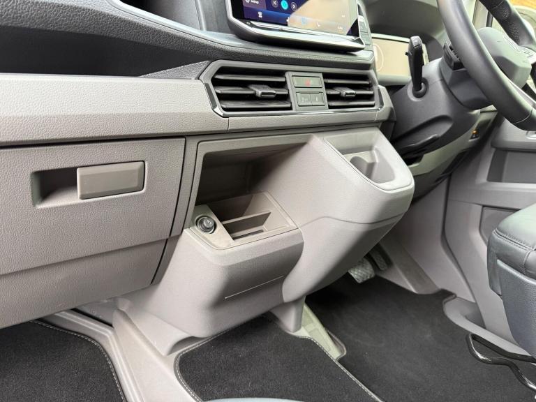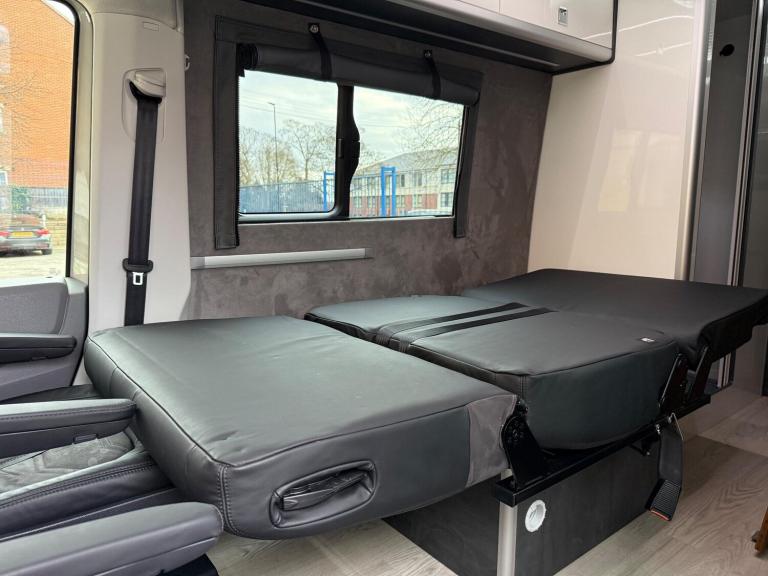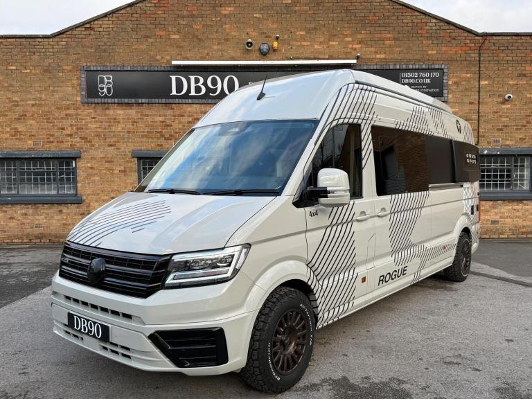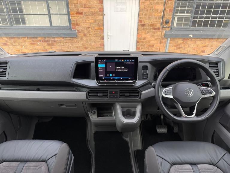 We're Proud to present his exceptional 2025 Volkswagen Crafter 4Motion Campervan, finished in Ascot Grey, this is a true all-season, off-grid adventure camper with just 1,995 miles, one owner, and a VW Service Plan. 177bhp 2.0 TDI Euro 6 engine with 4Motion four-wheel drive system. This Crafter is equally at home on the motorway, mountain passes, muddy campsites or remote destinations offering flexible sleeping for up to 5.Upgrades, Heated Fine Nappa Leather Sport Seats, Heated leather multi-function steering wheel, Heated windscreen, Swivelling driver & passenger seats, LED headlights with separate LED daytime running lights, Rear view camera, Alpine speaker upgrade, SavvyVan 3 5 touchscreen with Bluetooth, Tinted windows throughout. Atek elevating roof with double bed & ladder, Rear double bed boxes with aluminium slatted frame, RIB bed system, Alcantara fabric wall lining, RS fabric roof lining with embossed suede, LED ambient lighting with independent dimmer control, Kitchen & Dining, A beautifully finished practical kitchen area designed for real use, Oak kitchen worktop, Kitchen pod with soft-close drawers, Altro wood safety bleached oak flooring, Stirling induction hob, D1-90L Microwave, Thetford bowl sink with hot & cold tap, Bamboo swivel table with extension, 240V pop-up socket, Multiple USB & USC Points, wireless 10W charger. Bathroom & Utilities, Full shower pod (760 x 705mm) with roller door & lighting, Toilet, Indoor & outdoor shower hookup, 100L fresh water tank, 70L waste water tank, Truma Combi D4E water & space heater, Off-Grid Capability, Built for independence and extended stays, Clayton 3000 Power Unit with remote, 270W solar panels with inverter, Leisure battery system, 240V hook-up, Insulated floorboard, Sound deadening, ply boarding & carpeted walls/roof. 17 OZ alloy wheels with all-terrain tyres + full-size spare, Fixed towbar, Rear barn doors with gas struts, Van Der Moon rear door panels, Under-bed garage storage, Wheel ladder, CJL leisure side pods with windows, CJL Leisure Safari Blinds.