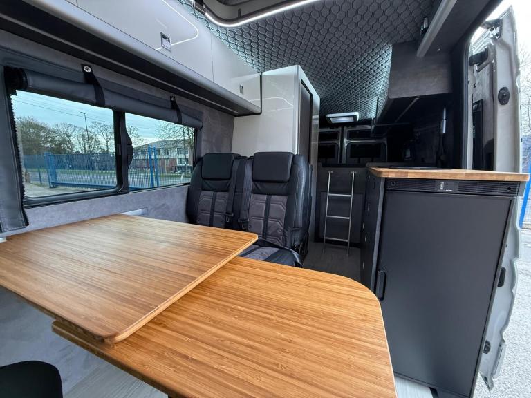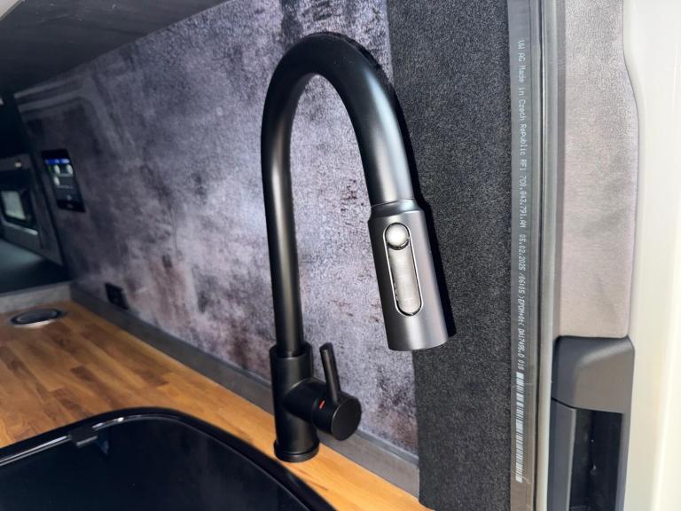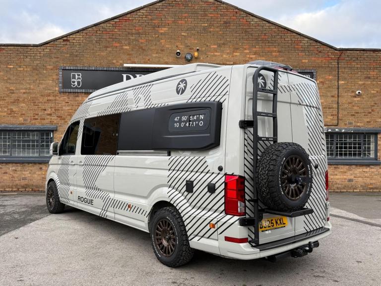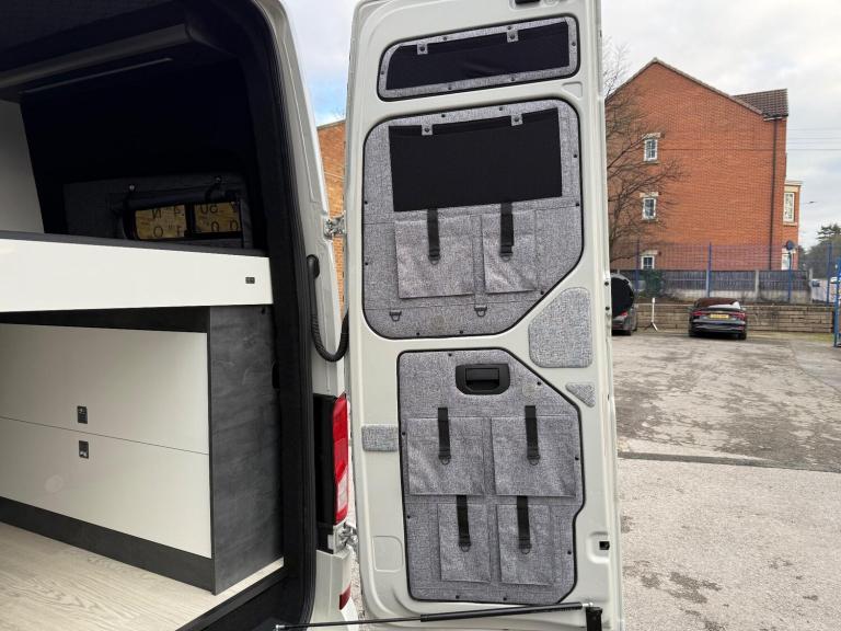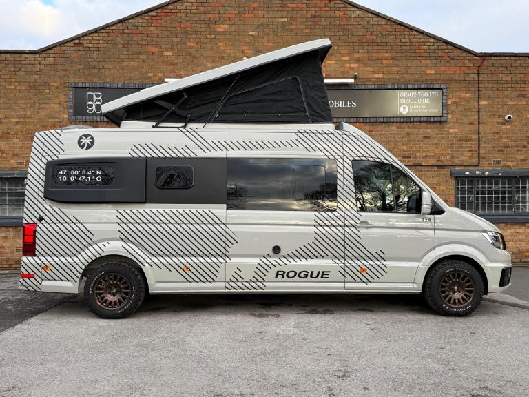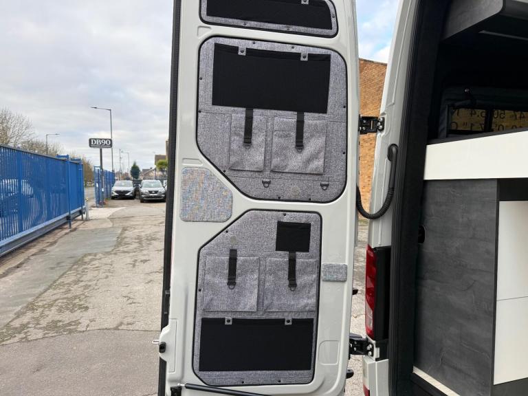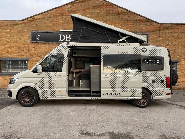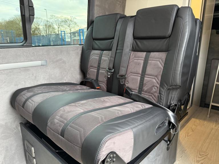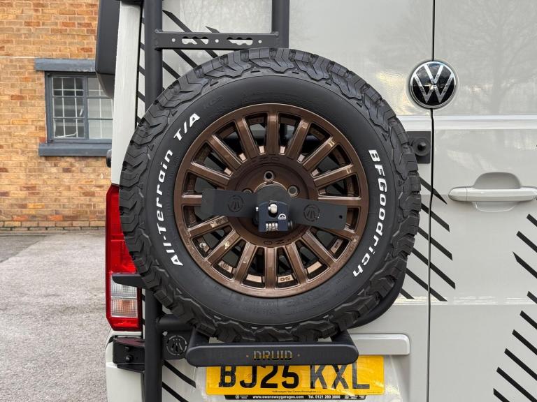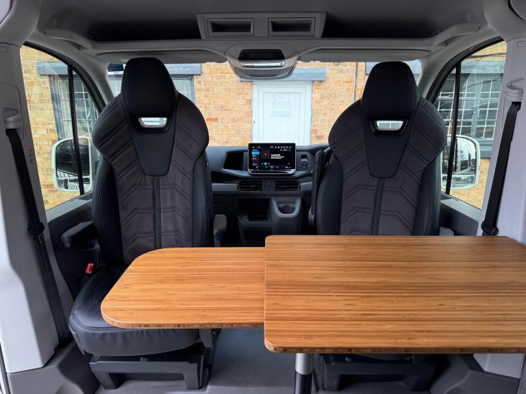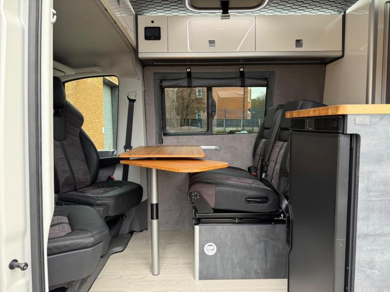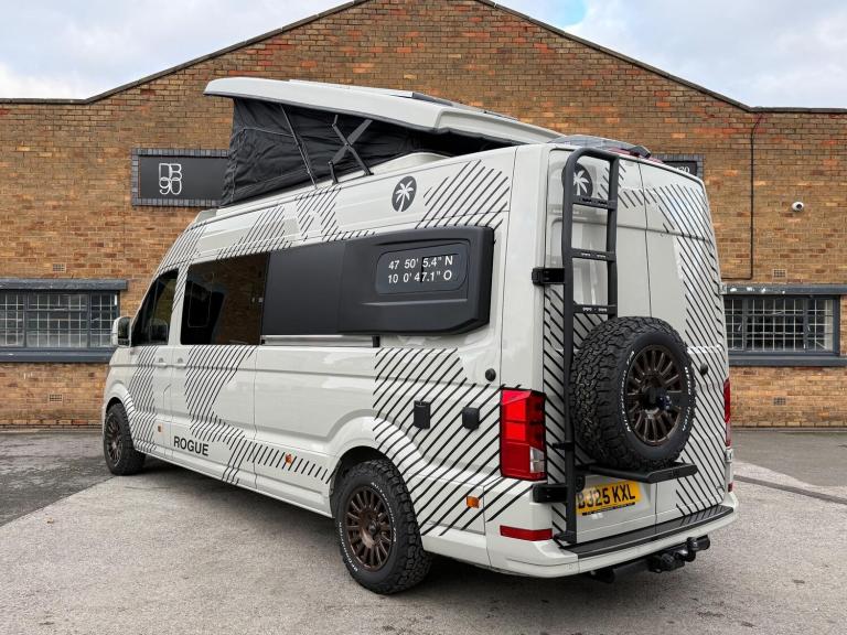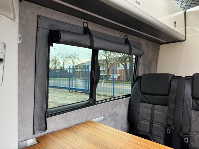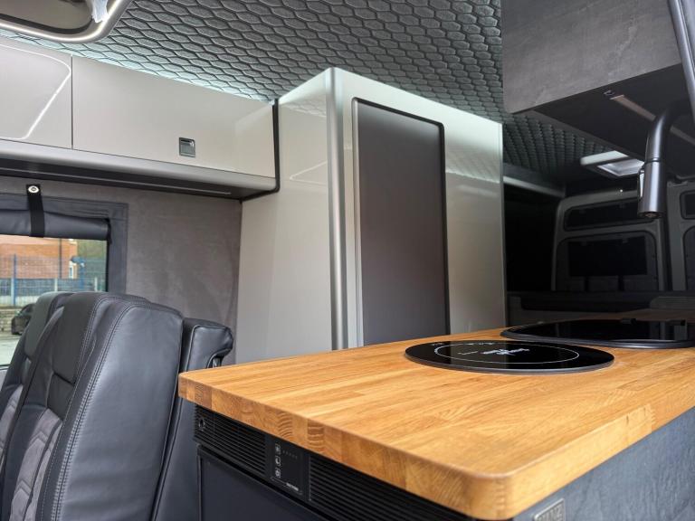 We're Proud to present his exceptional 2025 Volkswagen Crafter 4Motion Campervan, finished in Ascot Grey, this is a true all-season, off-grid adventure camper with just 1,995 miles, one owner, and a VW Service Plan. 177bhp 2.0 TDI Euro 6 engine with 4Motion four-wheel drive system. This Crafter is equally at home on the motorway, mountain passes, muddy campsites or remote destinations offering flexible sleeping for up to 5.Upgrades, Heated Fine Nappa Leather Sport Seats, Heated leather multi-function steering wheel, Heated windscreen, Swivelling driver & passenger seats, LED headlights with separate LED daytime running lights, Rear view camera, Alpine speaker upgrade, SavvyVan 3 5 touchscreen with Bluetooth, Tinted windows throughout. Atek elevating roof with double bed & ladder, Rear double bed boxes with aluminium slatted frame, RIB bed system, Alcantara fabric wall lining, RS fabric roof lining with embossed suede, LED ambient lighting with independent dimmer control, Kitchen & Dining, A beautifully finished practical kitchen area designed for real use, Oak kitchen worktop, Kitchen pod with soft-close drawers, Altro wood safety bleached oak flooring, Stirling induction hob, D1-90L Microwave, Thetford bowl sink with hot & cold tap, Bamboo swivel table with extension, 240V pop-up socket, Multiple USB & USC Points, wireless 10W charger. Bathroom & Utilities, Full shower pod (760 x 705mm) with roller door & lighting, Toilet, Indoor & outdoor shower hookup, 100L fresh water tank, 70L waste water tank, Truma Combi D4E water & space heater, Off-Grid Capability, Built for independence and extended stays, Clayton 3000 Power Unit with remote, 270W solar panels with inverter, Leisure battery system, 240V hook-up, Insulated floorboard, Sound deadening, ply boarding & carpeted walls/roof. 17 OZ alloy wheels with all-terrain tyres + full-size spare, Fixed towbar, Rear barn doors with gas struts, Van Der Moon rear door panels, Under-bed garage storage, Wheel ladder, CJL leisure side pods with windows, CJL Leisure Safari Blinds.