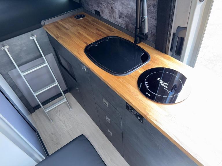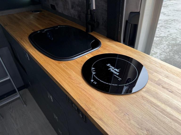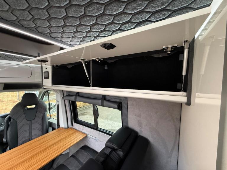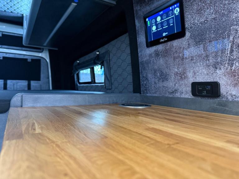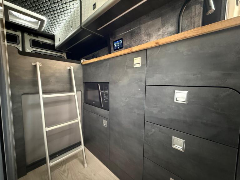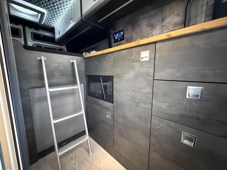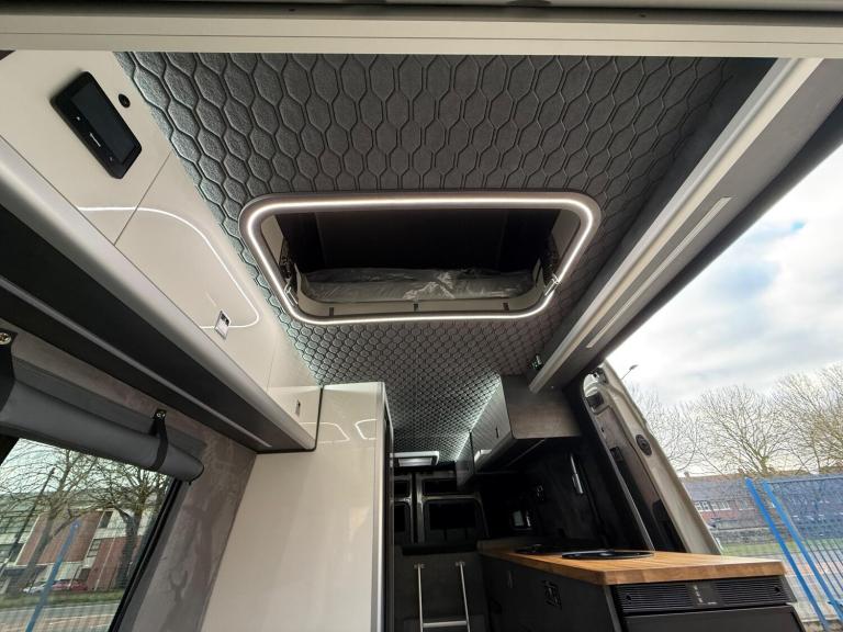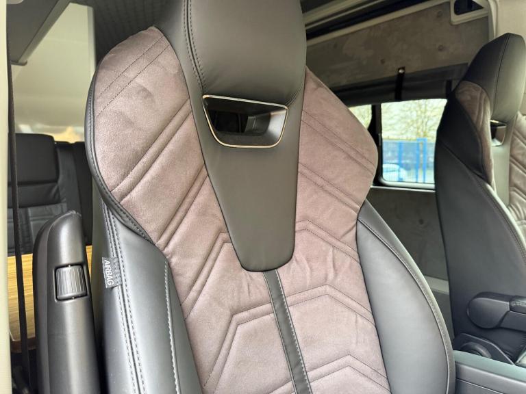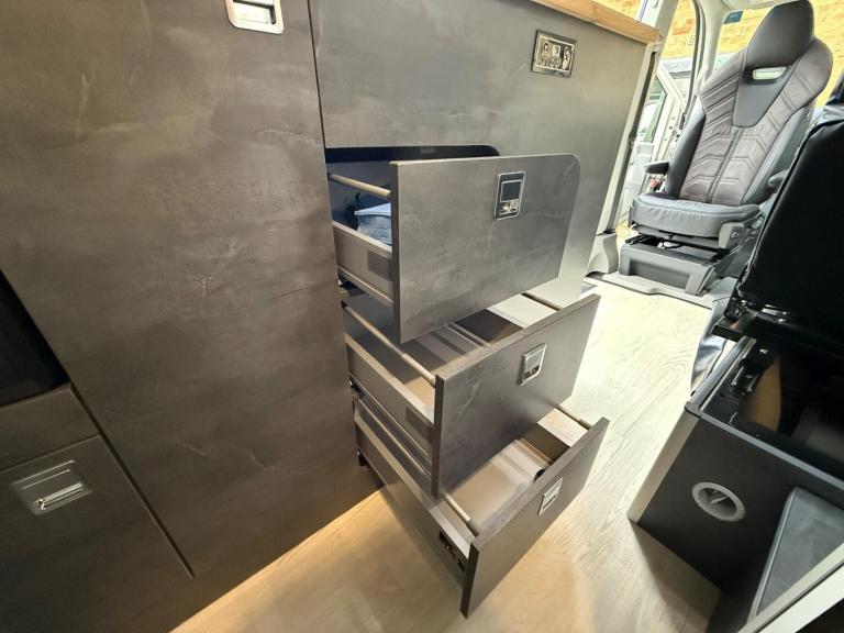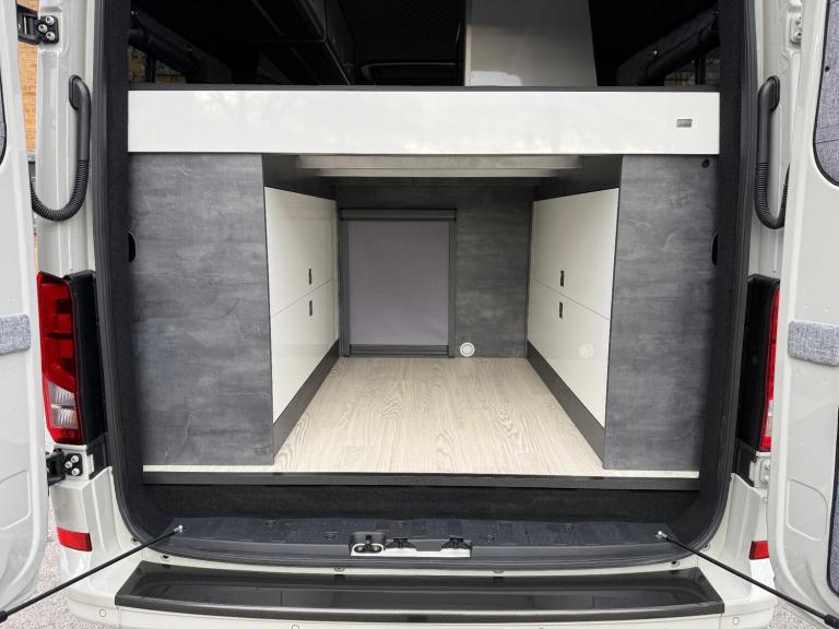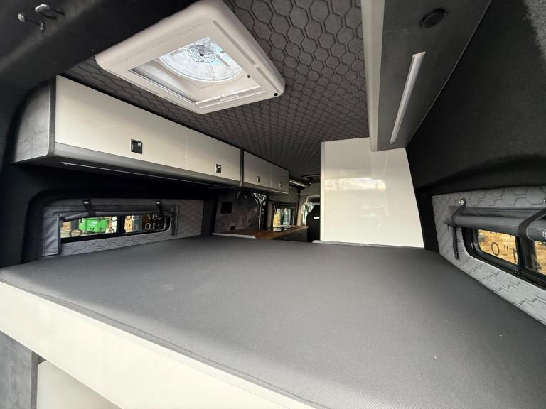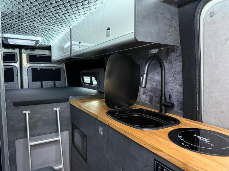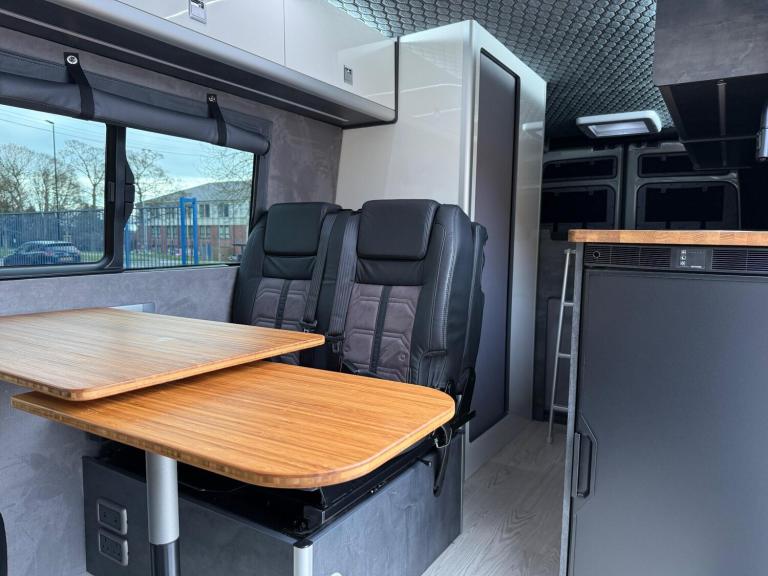 We're Proud to present his exceptional 2025 Volkswagen Crafter 4Motion Campervan, finished in Ascot Grey, this is a true all-season, off-grid adventure camper with just 1,995 miles, one owner, and a VW Service Plan. 177bhp 2.0 TDI Euro 6 engine with 4Motion four-wheel drive system. This Crafter is equally at home on the motorway, mountain passes, muddy campsites or remote destinations offering flexible sleeping for up to 5.Upgrades, Heated Fine Nappa Leather Sport Seats, Heated leather multi-function steering wheel, Heated windscreen, Swivelling driver & passenger seats, LED headlights with separate LED daytime running lights, Rear view camera, Alpine speaker upgrade, SavvyVan 3 5 touchscreen with Bluetooth, Tinted windows throughout. Atek elevating roof with double bed & ladder, Rear double bed boxes with aluminium slatted frame, RIB bed system, Alcantara fabric wall lining, RS fabric roof lining with embossed suede, LED ambient lighting with independent dimmer control, Kitchen & Dining, A beautifully finished practical kitchen area designed for real use, Oak kitchen worktop, Kitchen pod with soft-close drawers, Altro wood safety bleached oak flooring, Stirling induction hob, D1-90L Microwave, Thetford bowl sink with hot & cold tap, Bamboo swivel table with extension, 240V pop-up socket, Multiple USB & USC Points, wireless 10W charger. Bathroom & Utilities, Full shower pod (760 x 705mm) with roller door & lighting, Toilet, Indoor & outdoor shower hookup, 100L fresh water tank, 70L waste water tank, Truma Combi D4E water & space heater, Off-Grid Capability, Built for independence and extended stays, Clayton 3000 Power Unit with remote, 270W solar panels with inverter, Leisure battery system, 240V hook-up, Insulated floorboard, Sound deadening, ply boarding & carpeted walls/roof. 17 OZ alloy wheels with all-terrain tyres + full-size spare, Fixed towbar, Rear barn doors with gas struts, Van Der Moon rear door panels, Under-bed garage storage, Wheel ladder, CJL leisure side pods with windows, CJL Leisure Safari Blinds.
