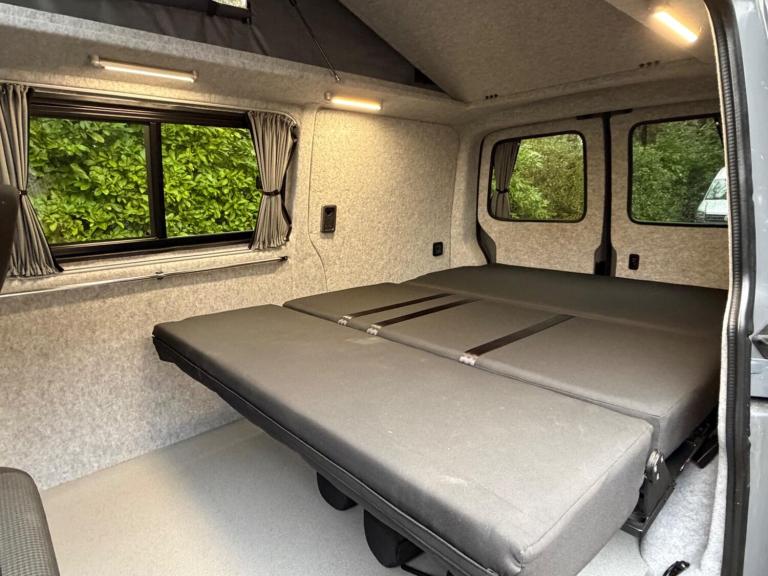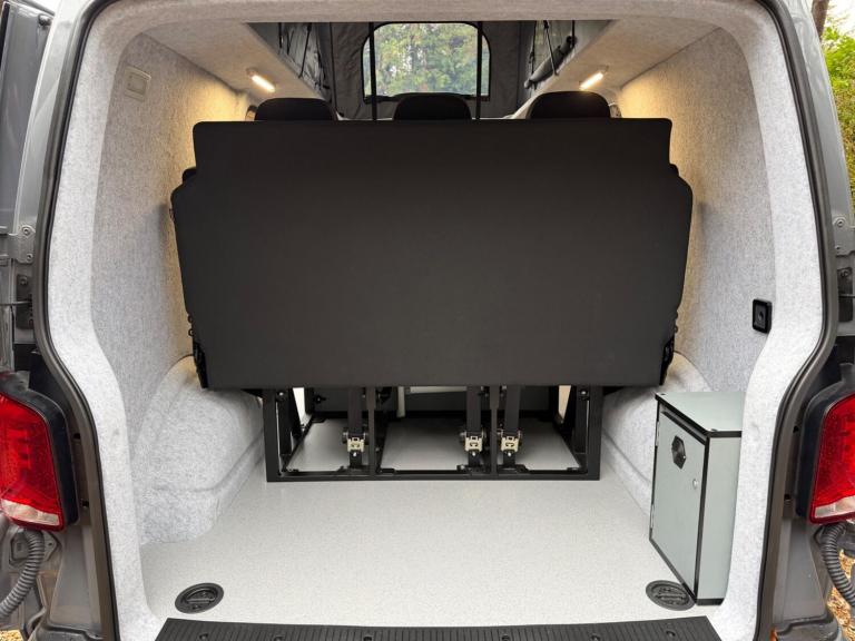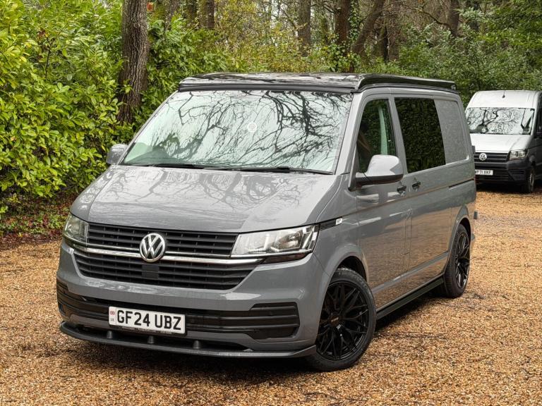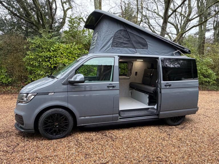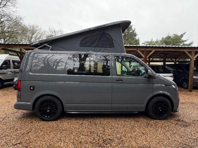 A Superb FunkyDubz Short Wheel Base 6 Seat Surfwagon Finished In Stunning Pure Grey with Black Westdubs Elevating Roof, Black Prism Sport Side Bars, Black 18'' Alloy Wheels, Front Splitter, Lowering Springs, Air Conditioning, Rear Camera, Front & Rear Parking Sensors, Heated Seats, Leather Multi Function Steering Wheels & cruise Control, Mains Hook Up, Triple Tested Seatbed with ISOFIX & Reclining Rear Bed Section, Roof Bed with Mattress, 240v/12v 7 USB Sockets, LED Rear Lighting, Stowable Rear Table, Double Front Passenger Seat Swivel, Carpet Limning & Insulation, Non Slip Altro Style Flooring, Limo Tinted Rear Window etc One Owner (VW Finance). Outstanding manufacturers Warranty. Spare key etc.