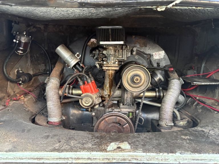 The engine is a 1600 AB code, which runs well. It has a larger carb installed and the van is surprisingly fast.
