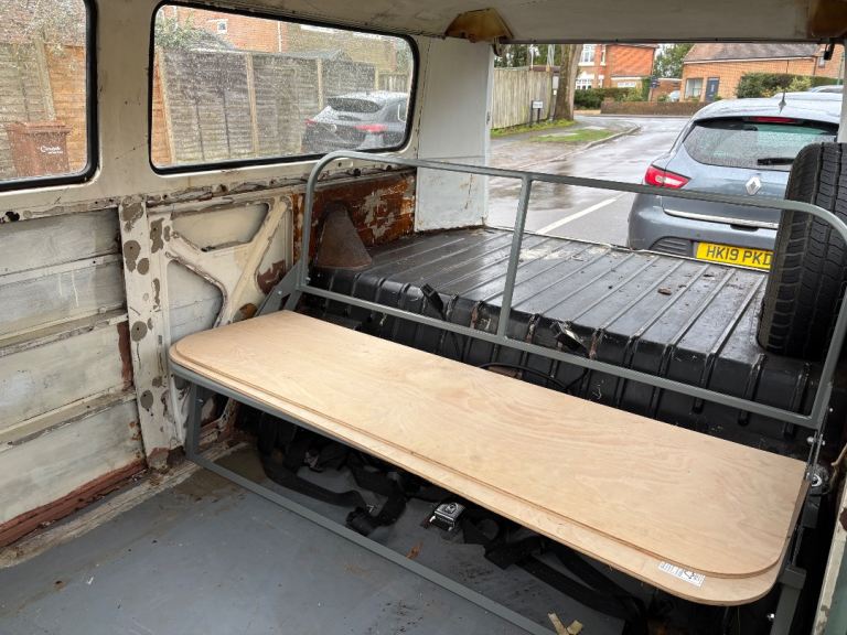 The interior is a blank canvas, but it does have an unused rusty lee rock and roll bed installed so would be a good base for a camper / day van conversion.