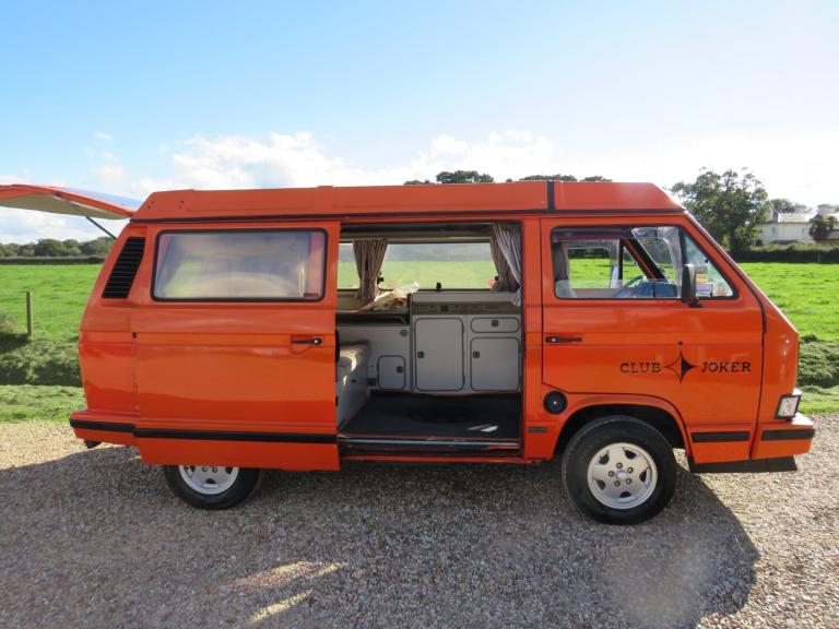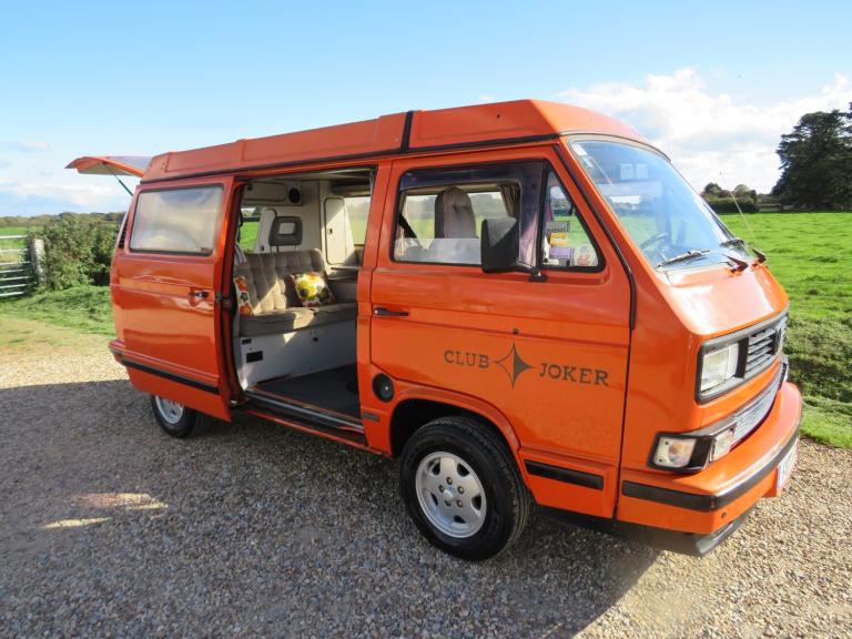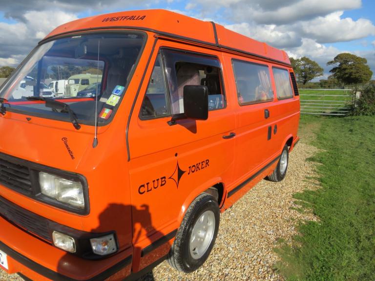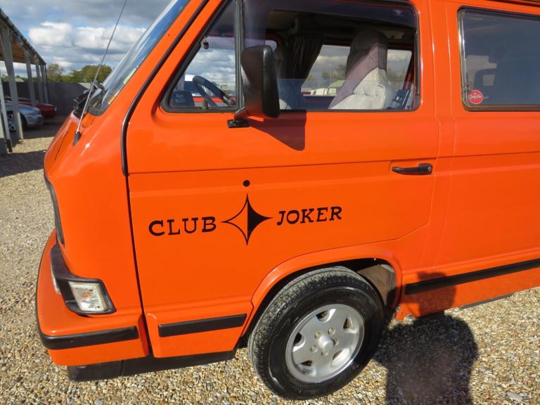 A FACTORY VOLKSWAGEN T25 WESTFALIA CLUB JOKER IN LEFT HAND DRIVE FORMAT IMPORTED INTO THE U.K. IN NOVEMBER 2006. RECENT WORK DETAILED IN THE HISTORY FILE INCLUDES A RE MACHINED CYLINDER HEAD WITH NEW STRETCH BOLTS / GASKETS, CAMBELT KIT, OIL SERVICE, NEW RADIATOR, WATER LEVEL SENSOR, AND EXHAUST WORK IN SEPTEMBER 2024 ( £760.64 ) A BRAKE OVERHAUL IS DETAILED IN 2023. THE VEHICLE ALSO RECEIVED A EXCHANGE ENGINE AND CLUTCH KIT IN 2007 PLUS AN EXCHANGE TURBO CHARGER, WATER PUMP AND GASKETS ETC. ( £4,443.85 ) JUST ARRIVED WITH MORE DETAILS TO FOLLOW.