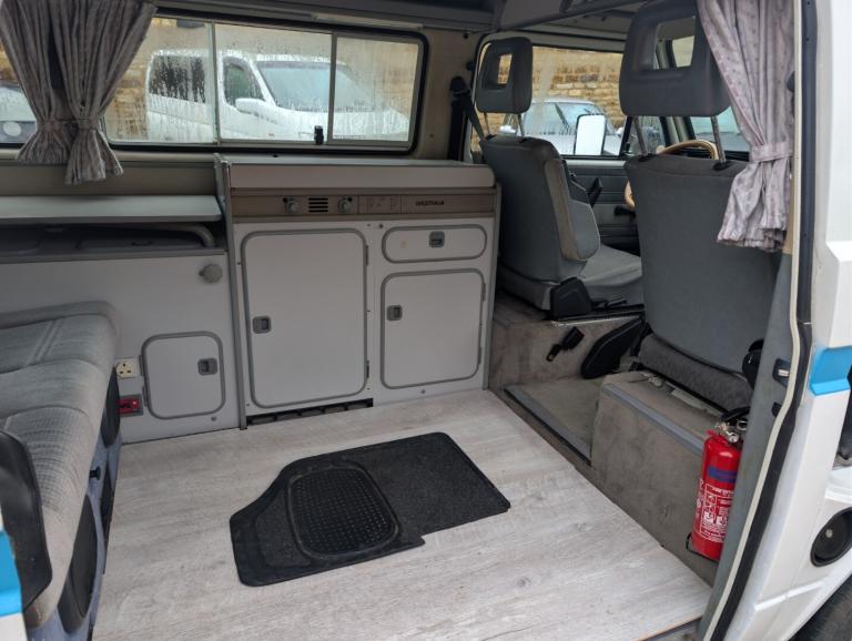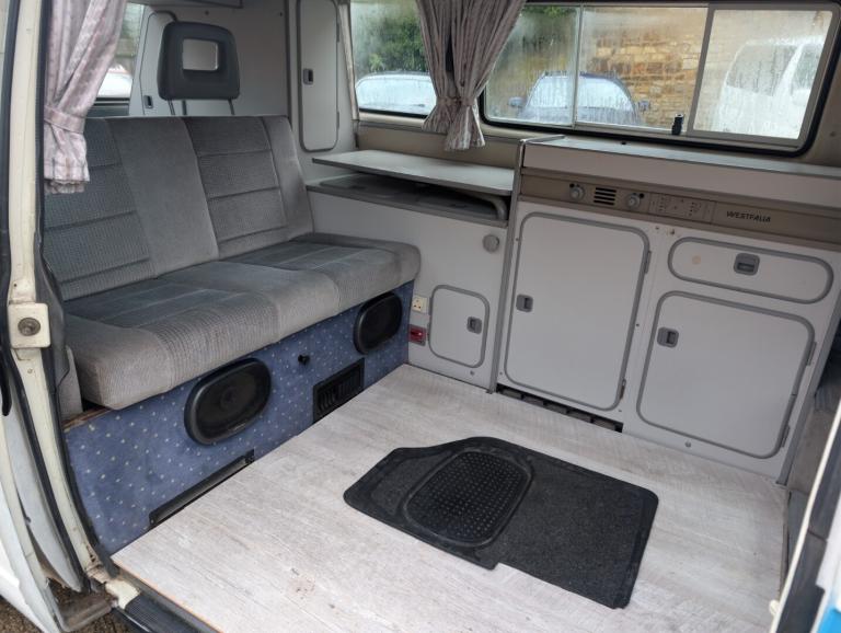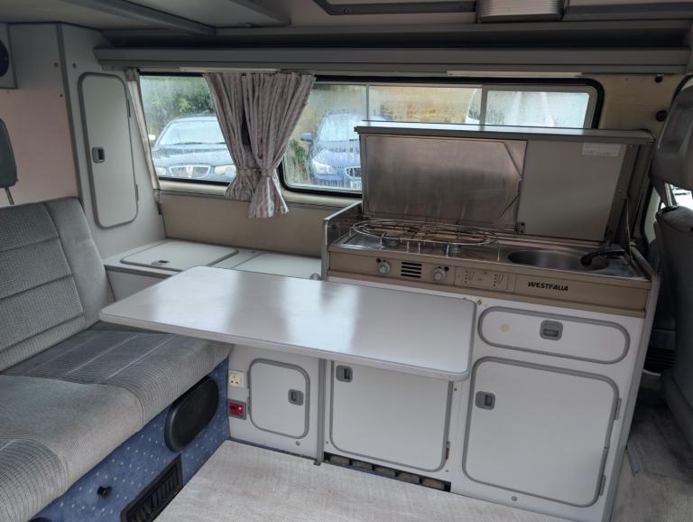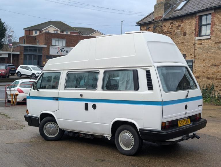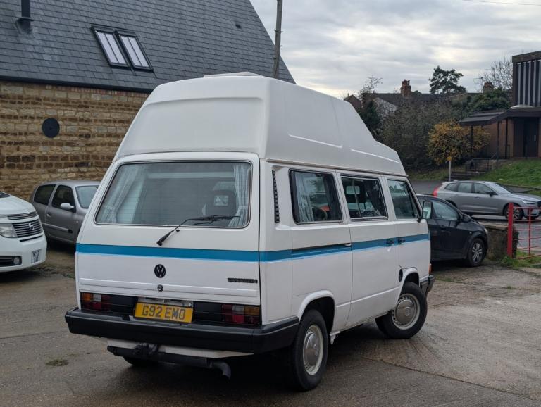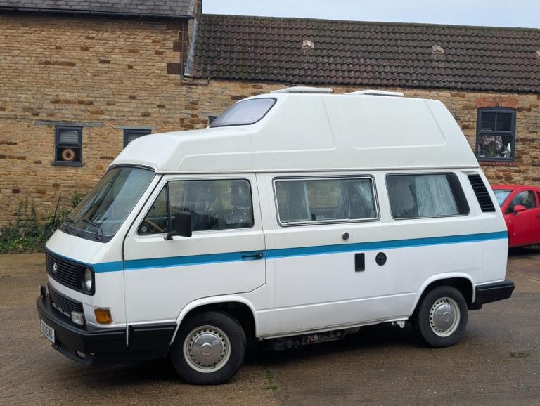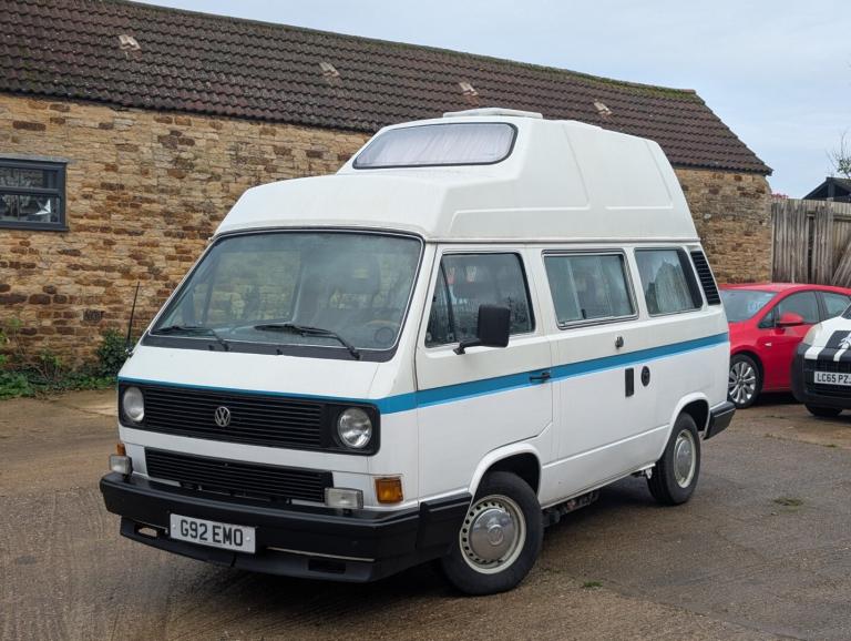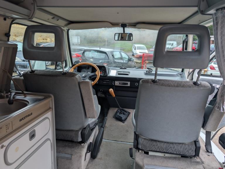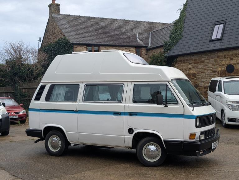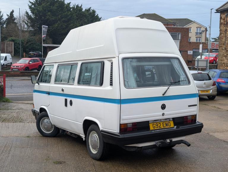 1990 Volkswagen Vanagon T25 Westfalia 1.6 Turbo Diesel. 422,000KM, MOT until September 2026, just about the most comprehensive history file you could wish for dating all the way back to the 1990s when the van was still in Germany and seemingly documenting its entire life in the UK. Imported in 2002, this is a proper Westfalia conversion and retains its original factory interior. The van is very straight, with no noticeable damage or repairs bar some areas of non-original paint. The high top conversion appears to be well sealed with no water ingress, the interior remaining dry even in this recent bad weather. Van runs and drives really well, seems to have been in regular use since it arrived in the UK and has had all the necessary servicing and maintenance it's required. All in all this is a well loved, and well maintained van that's ready to use. It comes with a sink, a hob, bed, sofa and table as well as all of the relevant hook up points to use those features. Lovely van that's just waiting to get touring again. For more details or to arrange a viewing please do not hesitate to get in contact.